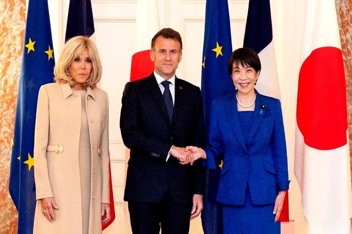 马克龙去日本那场戏,最有意思的不是他本人。 他跟日本那位高市早苗,俩人挨得那叫一个近,又是比划动漫手势,又是咧嘴大笑,闪光灯咔咔地闪,跟拍偶像剧似的。 镜头一转,他老婆布丽吉特,就站在几步开外。那张脸,黑得像块铁板,两只手死死抱在胸前,从头到尾,嘴角纹丝不动,眼神直勾勾地,不知道在看地上的哪块砖。 官方找补,说夫人是累了。 可谁都看得出来,那不是累,那是恶心。 你看高市早苗,当着一堆媒体的面,突然腰一弯,两只手往前一推,一个《龙珠》里龟派气功的姿势就出来了。她知道马克龙是动漫迷,这一招,就是赤裸裸的投其所好。 马克龙呢,先是身体僵了一下,随即笑得更开了,也跟着学样,把一个正式的外交场合,硬生生玩成了漫展。 俩人玩得起劲,背后的算盘打得更精。稀土、核能、太空合作,马克龙带去的一大帮法国老板,就等着他这个笑容换回真金白银。 而高市早苗呢?一个常年参拜靖国神社、否认历史的极右翼,在国际上名声都臭了,正缺一个欧洲大国总统给她站台,给她这张“不受欢迎”的脸上贴金。 这俩人的笑,就是一笔交易。 布丽吉特懂。她什么场面没见过?她只是不想陪着演。 让她对着一个否认历史、参拜战犯的人笑脸相迎?她做不到。马克龙为了订单,可以把底线暂时放进口袋,但她不愿意。 所以她就那么站着,像一尊沉默的雕像,成了那场“友好大戏”里唯一的、也是最刺耳的杂音。她的黑脸,像一记无声的耳光,抽在旁边那两个正挤眉弄眼的政客脸上。 说白了,这就是两种活法。一种是,为了利益,面子可以当成面具,随时戴上随时摘下;另一种是,我这张脸,就是我的底线,装不出来。 你是觉得布丽吉特不给老公面子,还是觉得这份“不装”,才是最难得的体面?