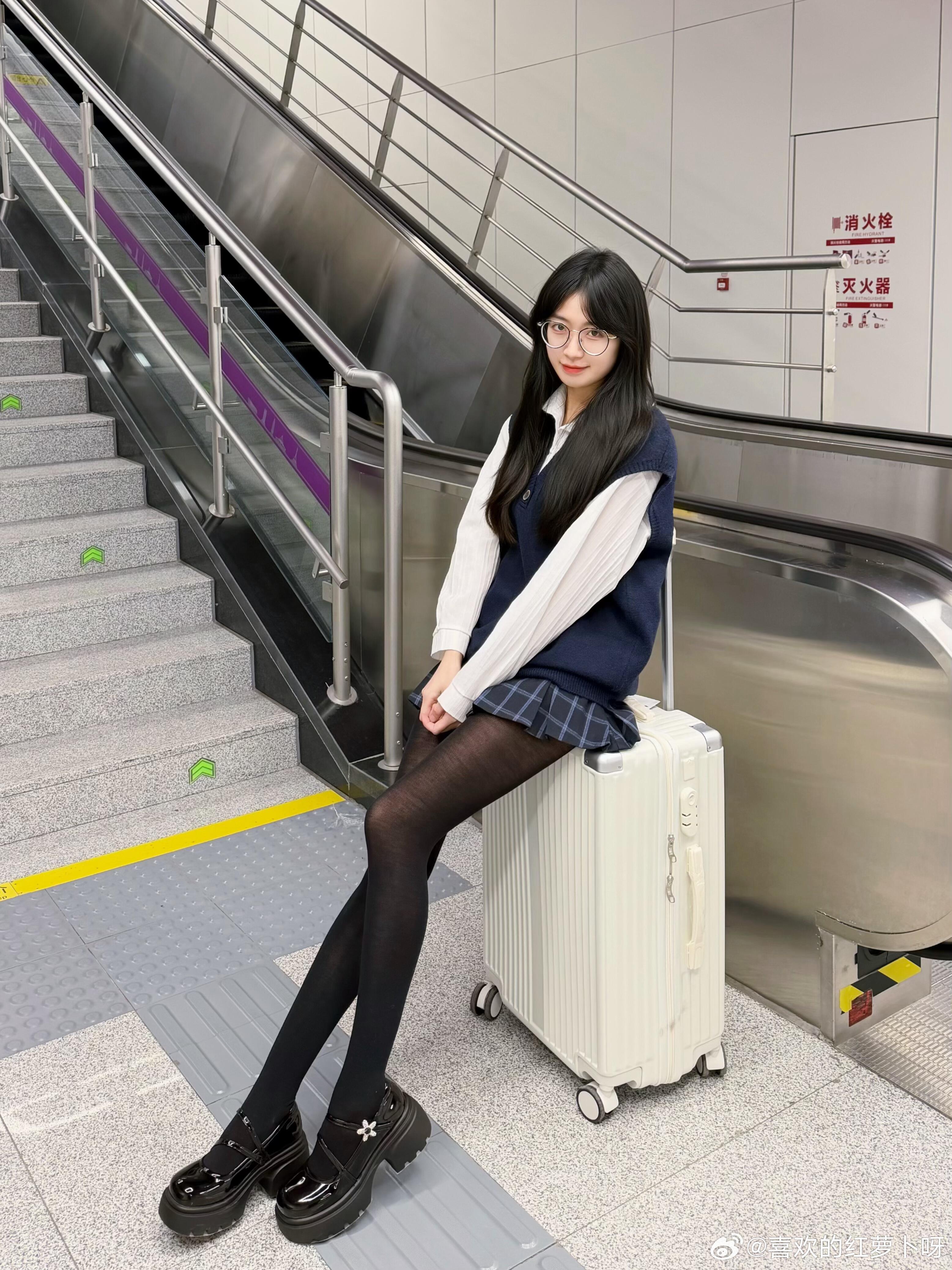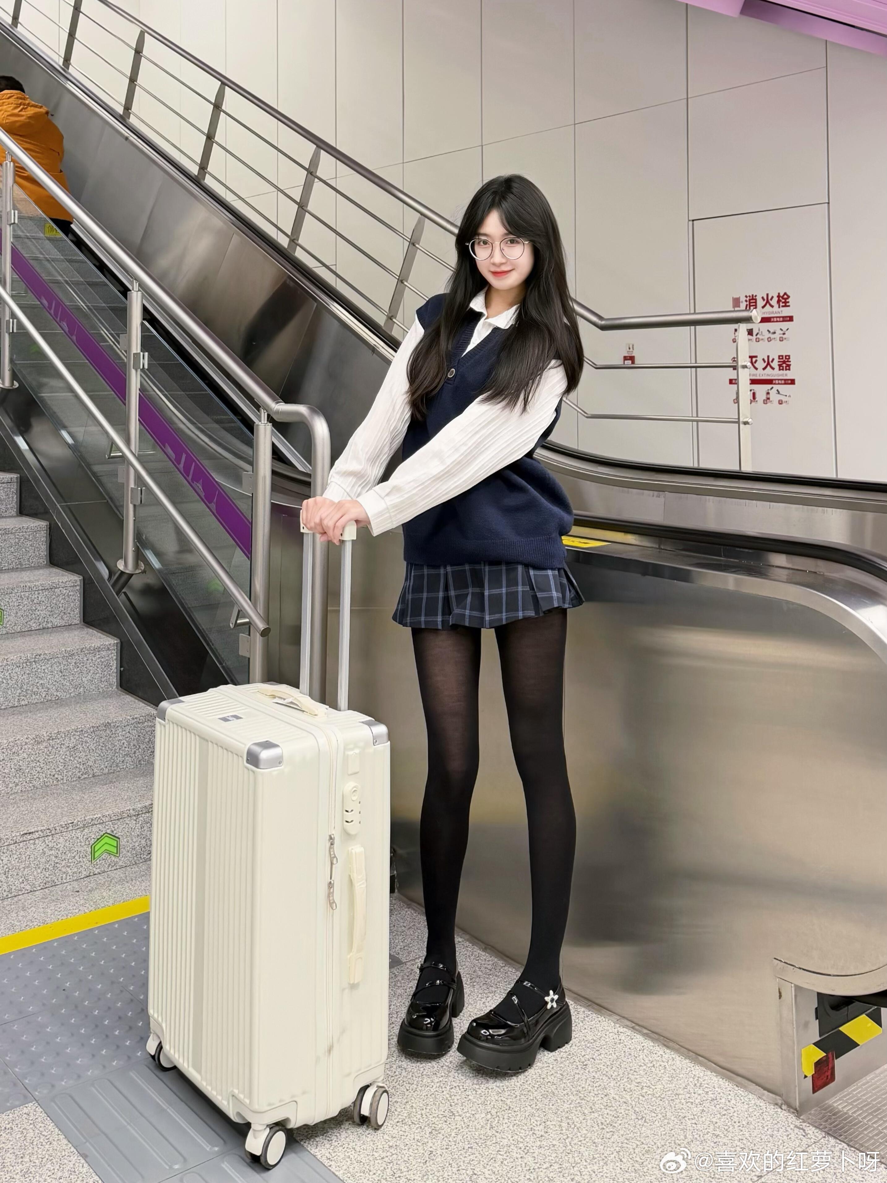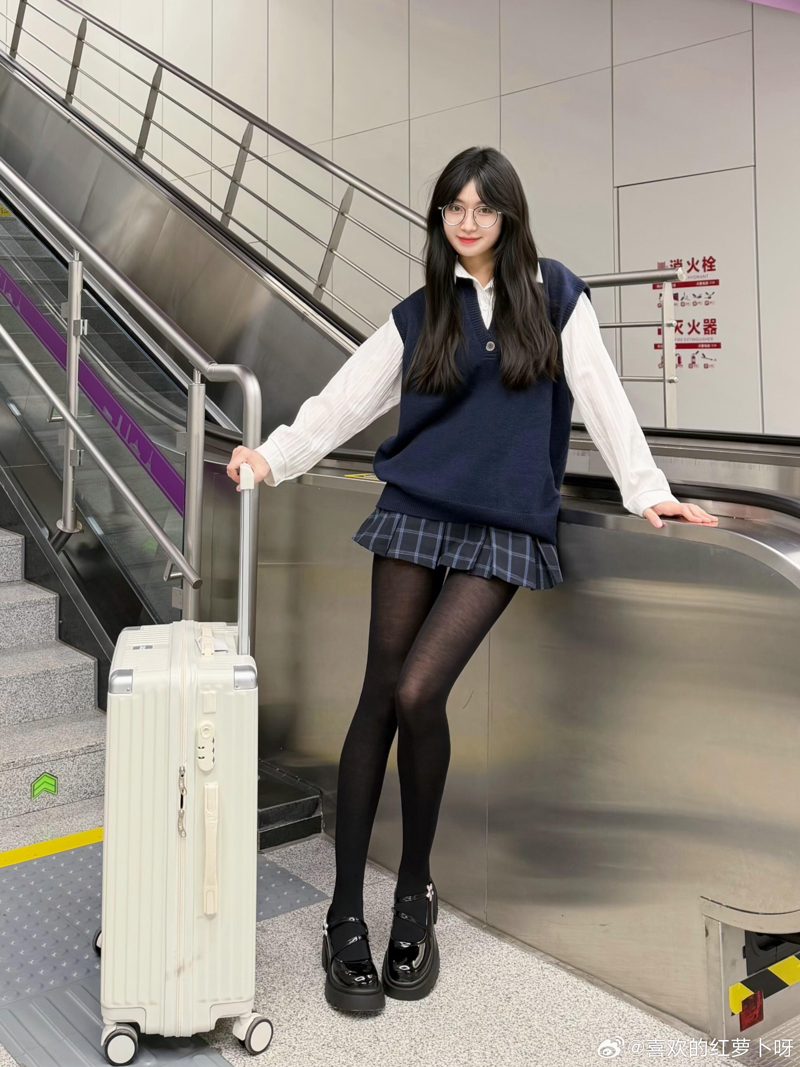 张淼怡,西装裙搭配波点丝袜,可少女可优雅。张淼怡