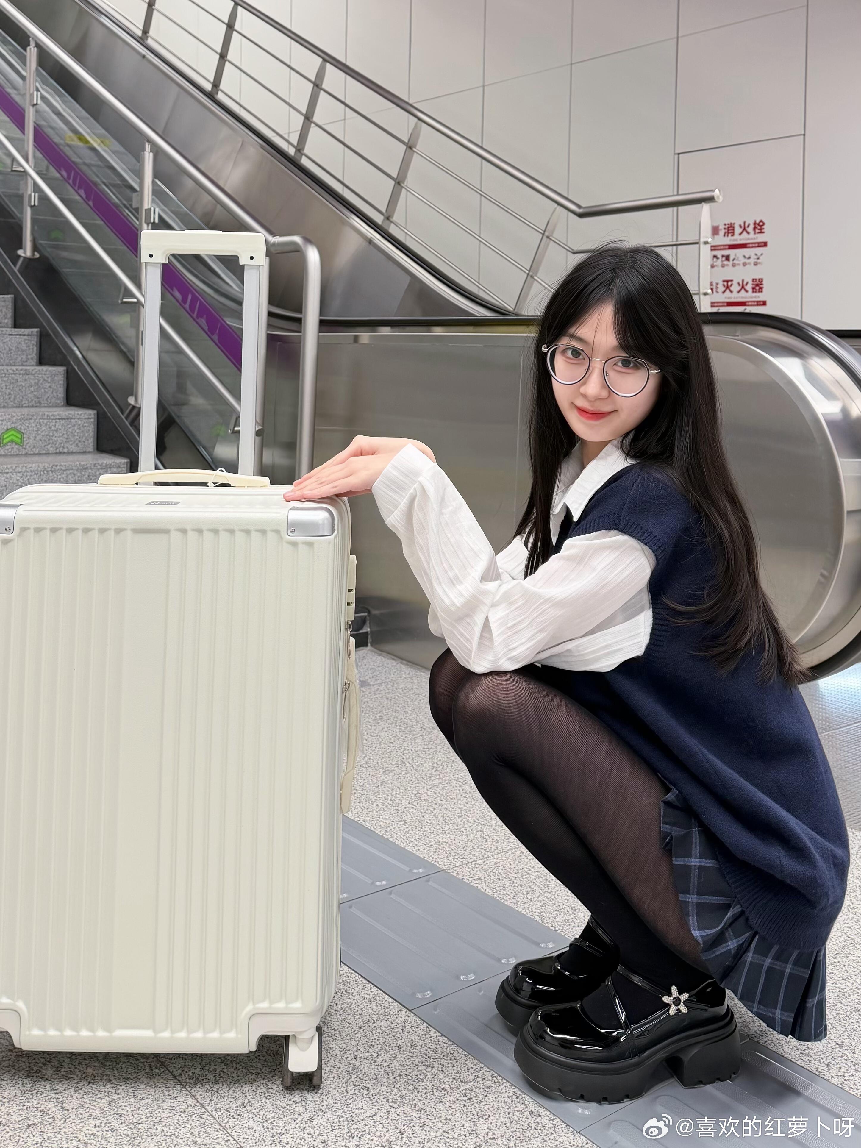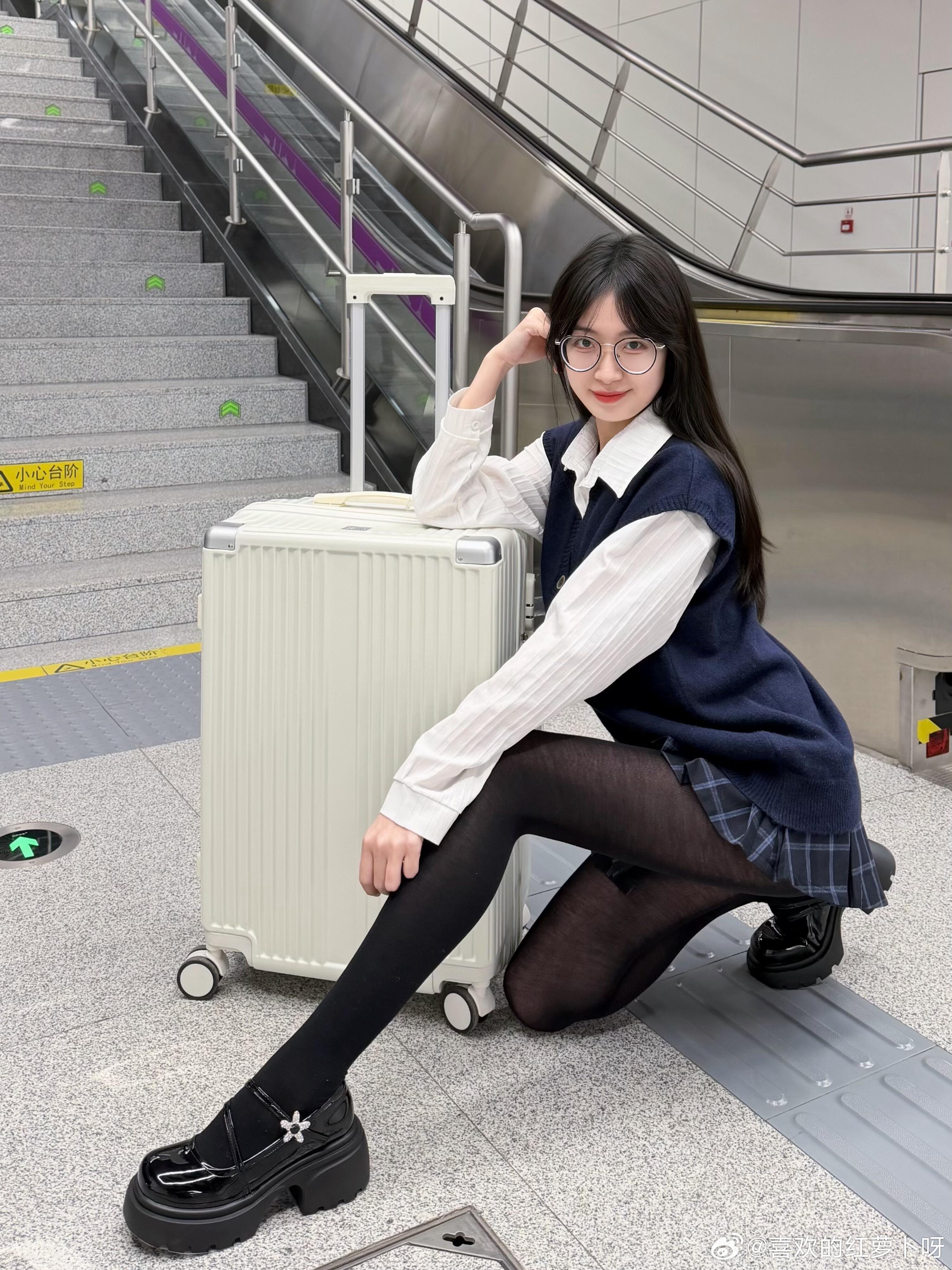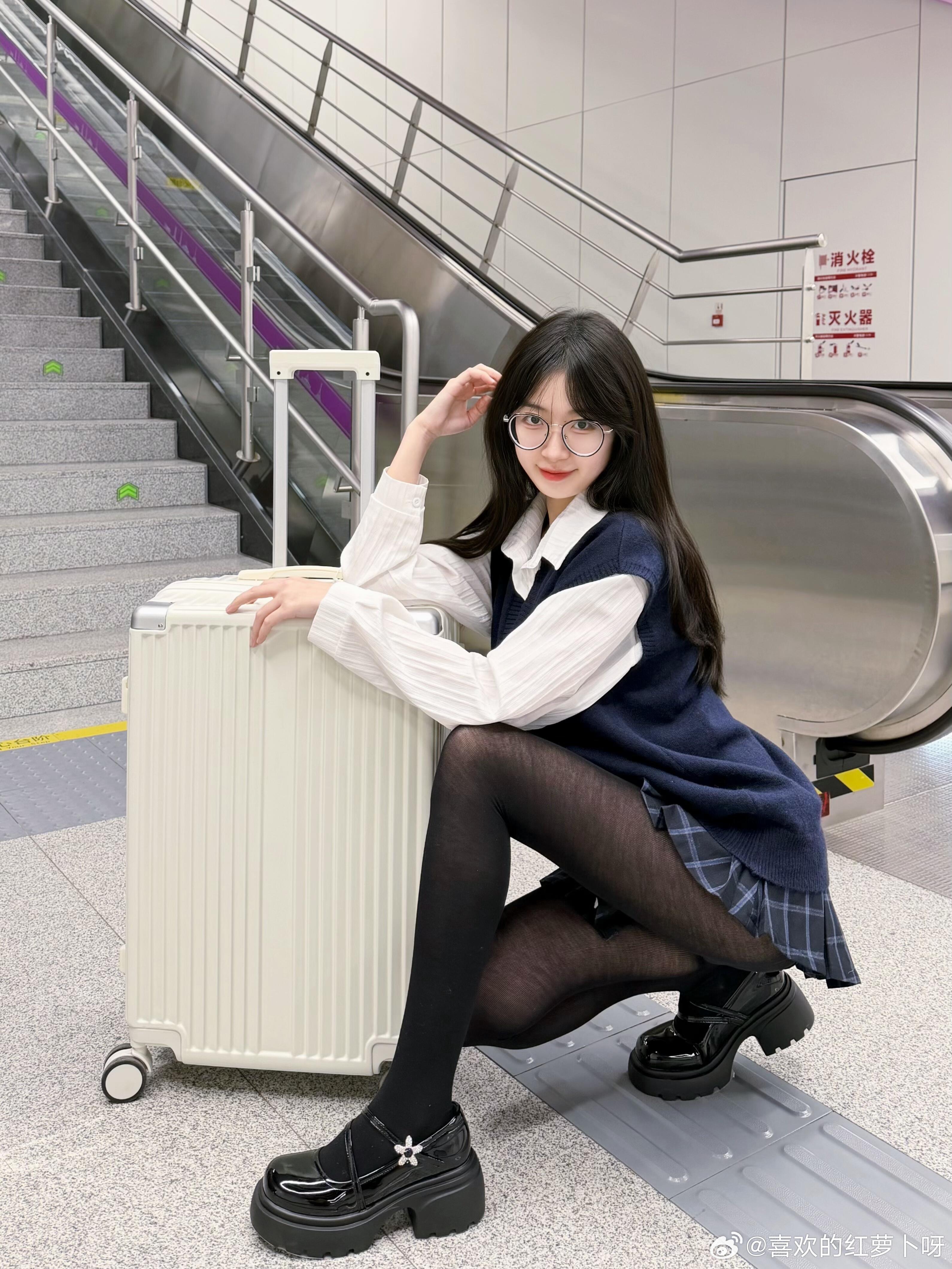 张淼怡,西装裙搭配波点丝袜,可少女可优雅。张淼怡