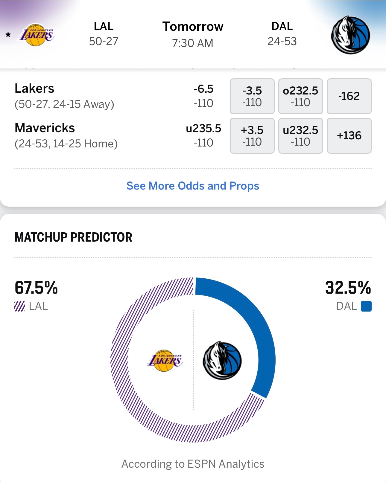 明天7:30,客战独行侠,老詹独自带队,缺少东里刚的湖人……