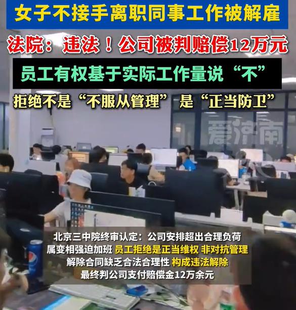 北京,一女子在公司上班,一位同事离职后,公司把任务转给女子,工作客户对接已经从18名飙升到52名,还经常加班,女子暂且默默接受。没想到,又有一位同事离职,公司又把活儿交到女子名下,女子表示:工作量已经饱和,无法再增加新工作。谁知道公司接连给女子发出两份书面警告,要求她务必“一个人干三个人的活儿”! 高女士已在这家北京的公司工作两年有余,一直是部门里踏实肯干的员工,从不推诿扯皮,也从没有过任何违纪记录。 最初,她的工作内容清晰且合理,主要负责华北地区的订单录入,日常对接18名销售人员,工作量适中,按时完成绰绰有余。这样平稳的工作状态,却在第一位同事离职后被彻底打破。 那位同事离职后,公司没有招聘新人填补空缺,而是直接将其负责的全部工作,一股脑地转给了高女士。 这一调整,让她对接的销售人员数量从18名飙升到52名,工作量翻了近三倍,加班成了家常便饭。高女士没有立刻拒绝,她想着多承担一点,或许能换来公司的认可,可她没想到,这只是压榨的开始。 为了完成激增的工作,高女士每天提前到岗,晚上经常忙到深夜,甚至周末也要主动加班,钉钉打卡记录和工作录屏,都清晰地记录着她的付出。 她没有抱怨,也没有向公司提任何加薪或减负的要求,只是默默扛下了所有,只希望能顺利完成工作,不被公司挑剔。可这份隐忍,并没有换来体谅,反而让公司得寸进尺。 仅仅过了一个多月,部门里又有一位负责电商平台订单的同事提出离职。按照常理,公司理应及时招聘新人,或是合理分配工作,可公司的做法,却再次将矛头指向了高女士。领导直接通知高女士,接手这位离职同事的全部电商订单工作,没有商量,也没有任何补偿说明。 此时的高女士,早已被之前增加的工作量压得身心俱疲,日常工作已经完全饱和,哪怕每天加班,也只能勉强完成现有任务。面对公司的再次摊派,她再也无法承受,只能明确表示自己无法再增加新的工作。她本以为,公司会体谅她的难处,重新调整工作分配,可现实却给了她沉重一击。 拒绝的话音刚落,高女士就收到了公司的第一份书面警告,警告中称她“拒绝正常工作安排,违反公司规章制度”,要求她在3日内接手新的工作任务。高女士看着警告信,心里满是委屈,她只是如实说明自己的工作量饱和,并没有故意对抗公司管理,可公司却丝毫不予理会。 见高女士没有妥协,公司在短短三天后,又发出了第二份书面警告,语气比第一份更加严厉,明确要求她务必接手所有工作,相当于一个人干三个人的活儿,否则将按严重违纪处理,甚至可能被辞退。两份警告信,像两把尖刀,刺穿了高女士最后的隐忍,也让她彻底看清了公司的冷漠。 其实,高女士的遭遇并非个例,职场中类似的“一人多岗”压榨事件,时有发生。上海一位高级行政主管吴某,就曾被公司要求同时负责两个商场的行政工作,服务人数从40人增至120人,工作量大幅增加,吴某拒绝后被公司辞退,最终法院判决公司违法解除劳动合同,赔偿吴某28万余元。 还有北京另一位女员工李清,因同事离职被要求接手额外工作,拒绝后被公司开除,最终法院判决公司赔偿12万余元。这些案例都证明,公司随意增加员工工作量、逼迫员工“一人干多人活”的行为,本身就不符合法律规定,可为何还有这么多公司明知故犯? 高女士的劳动合同中,虽然约定了“拒绝正常工作交接可解除劳动合同”,但她的拒绝并非恶意对抗,而是基于自身工作量确实饱和的客观事实。根据《中华人民共和国劳动合同法》,用人单位调整工作内容,必须合理且与劳动者协商一致,不得单方面强制增加工作量。 公司之所以敢如此强硬,或许是抓住了打工人害怕失业的心理,认为高女士会为了保住工作而妥协。毕竟,在当下的就业环境中,很多打工人背负着房贷、车贷的压力,哪怕遭遇不合理对待,也只能忍气吞声,可高女士没有选择妥协,她决定拿起法律武器,维护自己的合法权益。 她整理了自己的加班记录、工作对接凭证,以及公司发出的两份书面警告,向劳动仲裁部门提起仲裁,要求公司撤销警告,并赔偿自己的相关损失。目前,案件仍在进一步审理中,可高女士的遭遇,却引发了无数打工人的共鸣,也让大家开始反思职场中的不合理压榨。 高女士只是千千万万打工人的一个缩影,她的隐忍与反抗,藏着无数打工人的无奈与坚守。很多时候,打工人的妥协,并不是懦弱,而是为了生活的妥协,可这种妥协,不该成为公司肆意压榨的借口。公司的发展,离不开员工的付出,可员工的付出,也理应得到尊重和合理的回报。 如果每个公司都像高女士所在的公司这样,把员工当成免费的劳动力,肆意增加工作量,不尊重员工的合法权益,最终只会失去员工的信任,影响公司的长远发展。 而对于打工人来说,面对不合理的工作安排,一味的隐忍只会让自己陷入更深的困境,学会拿起法律武器维权,才是对自己最好的保护。