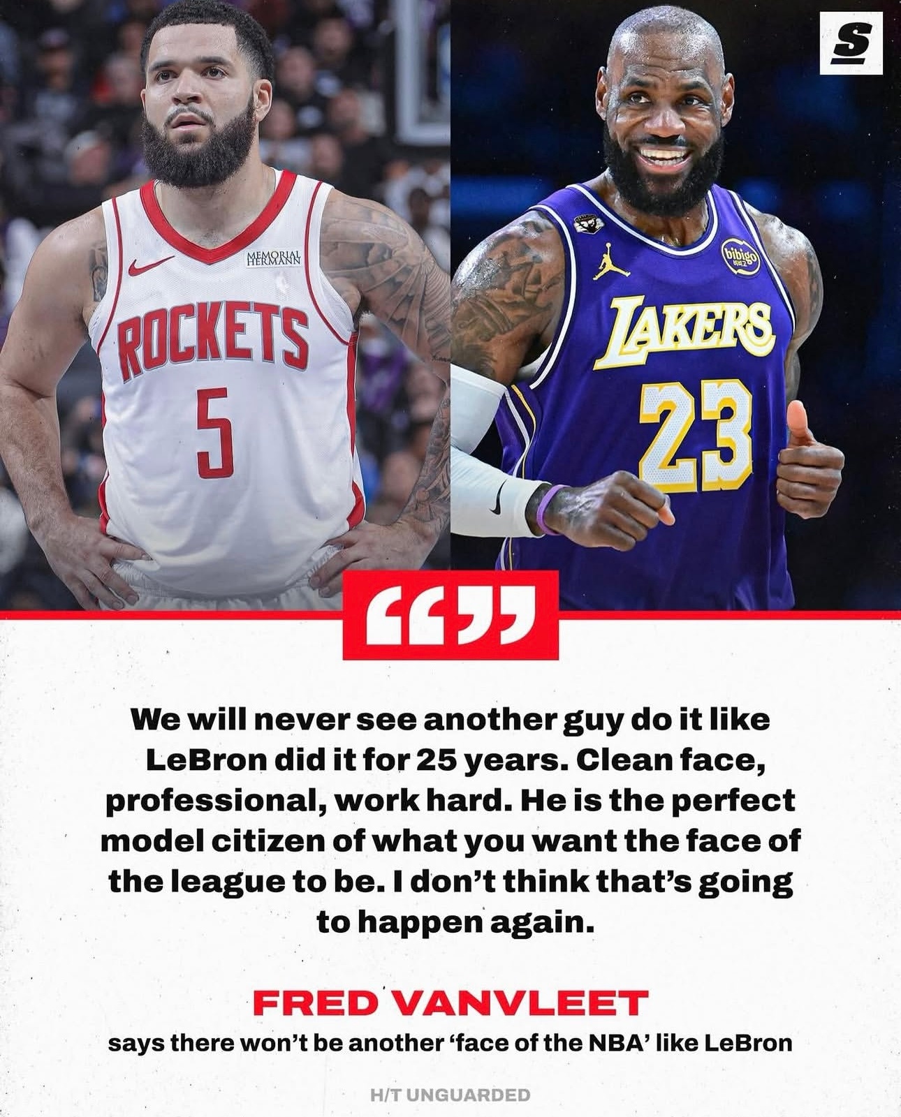 火箭后卫范弗利特表示,不会再有第二个勒布朗这样的门面级人物了: