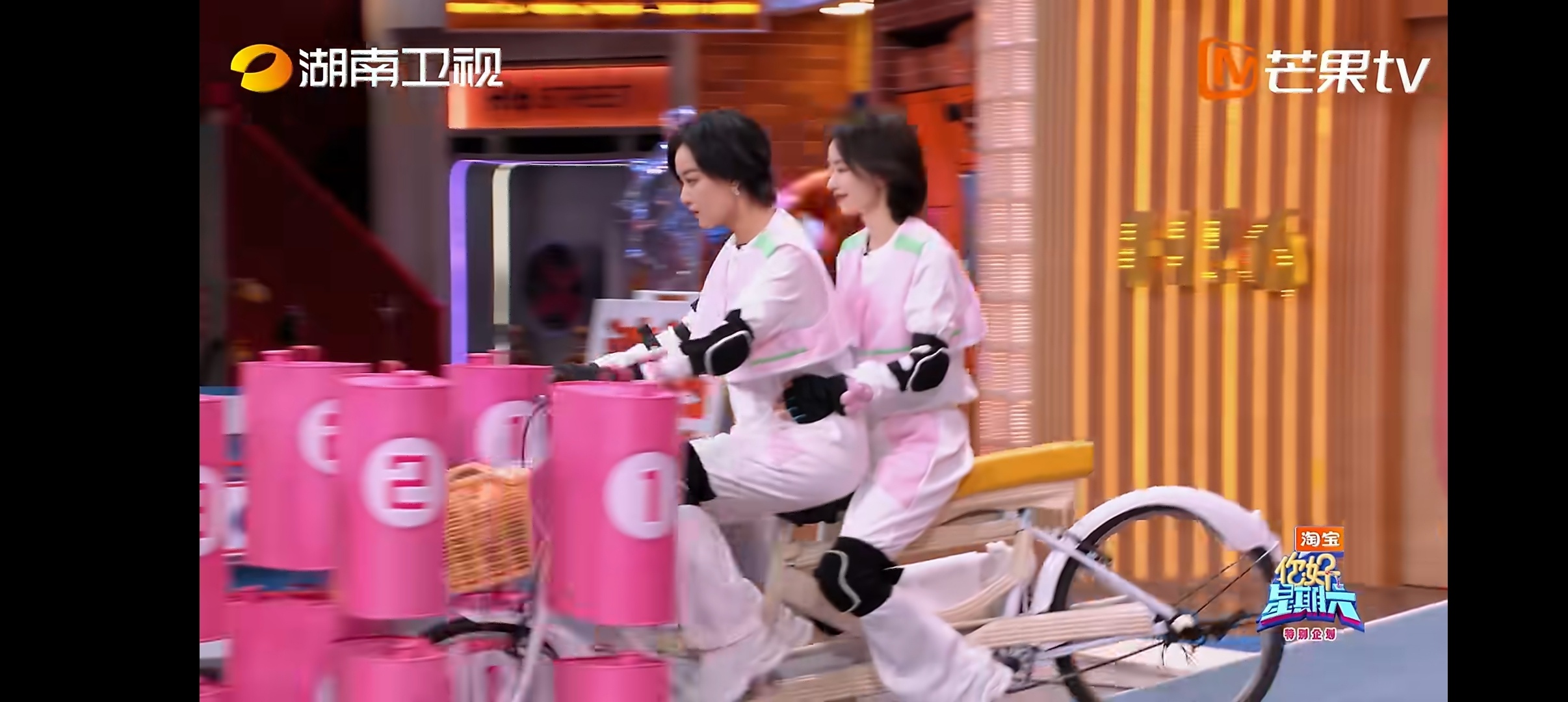 倪妮稳稳的很让人安心 倪妮这段太帅了吧,载着刘雅瑟骑单车过桶阵,全程淡定自信,稳稳控制方向精准避开所有障碍物,好冷静好酷!你好星期六