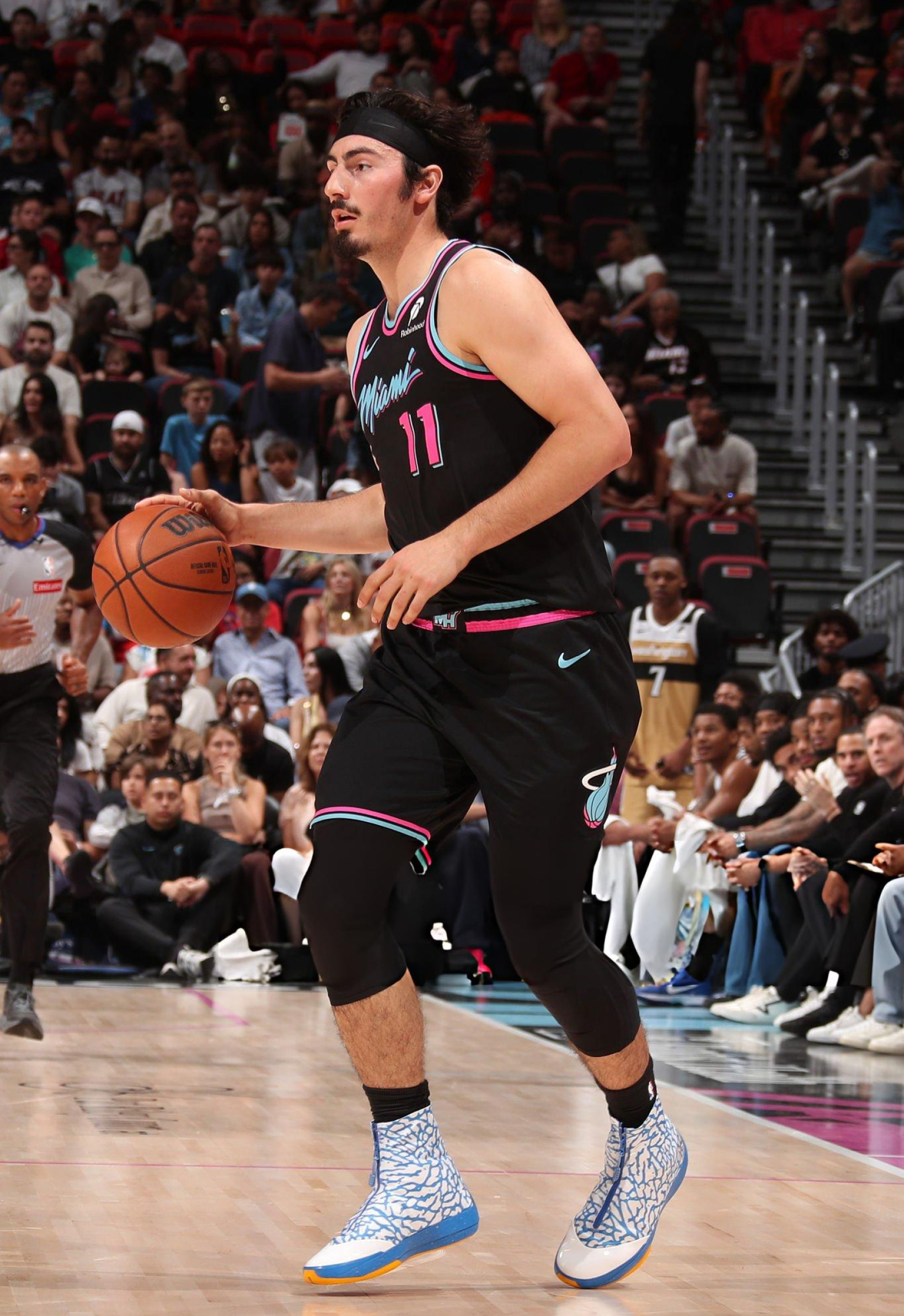 热火小将海梅·哈克斯 Jr. 上脚了一双 Air Jordan 4028 PE,