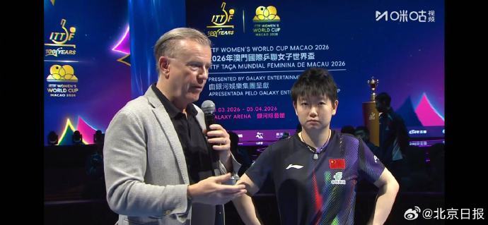 【孙颖莎说没有给对手喘息的机会】孙颖莎说半决赛状态更好一些 4月5日,2026澳门乒乓球世界杯女单半决赛,孙颖莎4比0战胜莎宾·温特,顺利晋级决赛。赛后采访中,孙颖莎说:半决赛的状态会更好一些,比赛中没有给对手很多喘息的机会,投入地打好每一分。(咪咕体育)