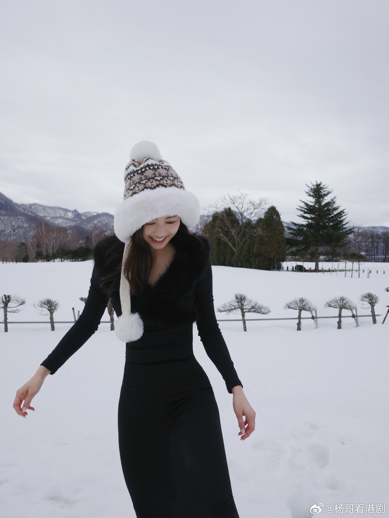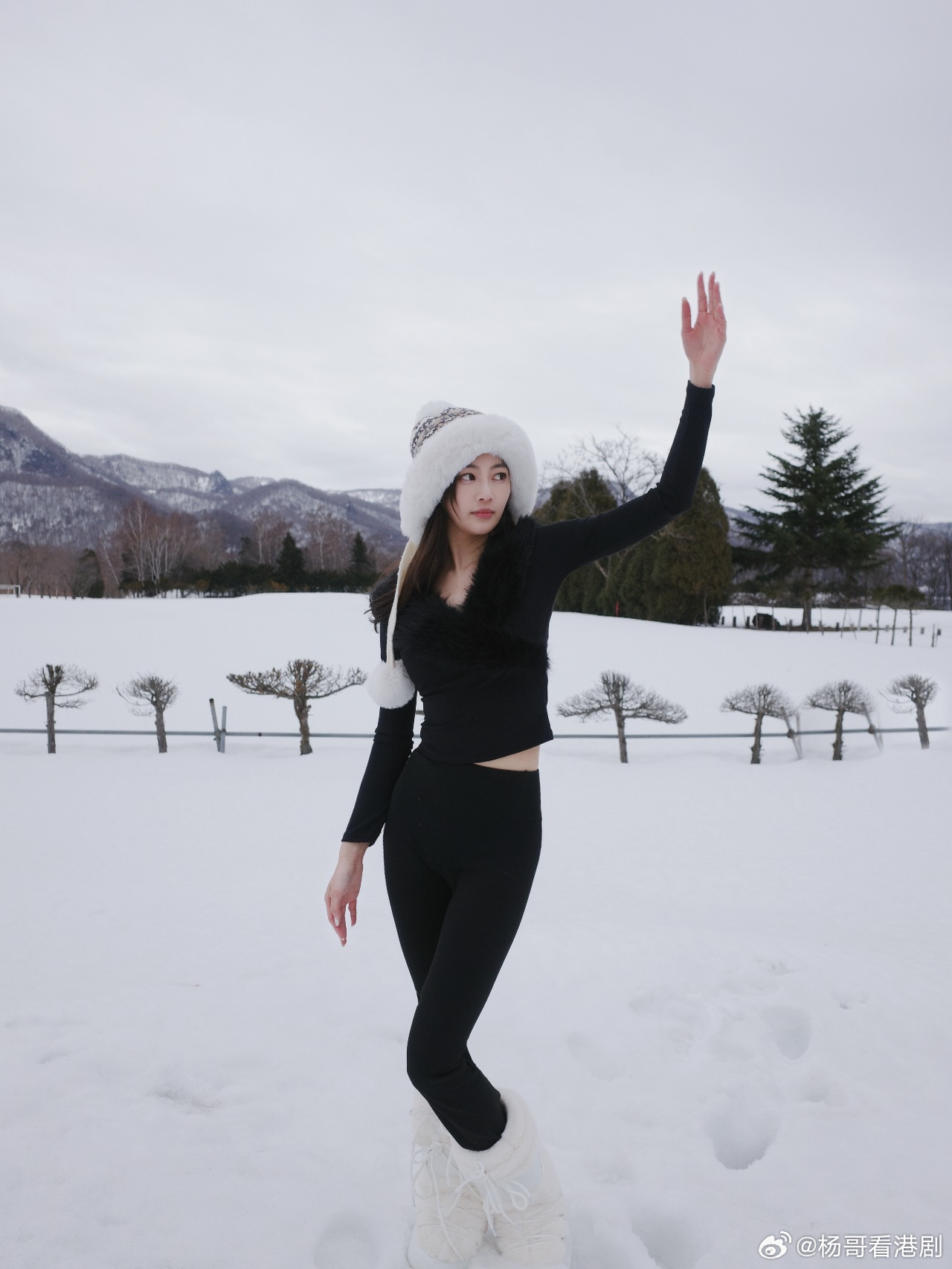 相中所見,Rosita以一身全黑貼身造型出鏡,上身毛領上衣襯貼身長褲,完美襯托出佢玲瓏有致嘅好身材,再配上一頂充滿冬日感嘅毛絨冷帽,喺白茫茫嘅雪地襯托下,冷暖對比格外搶眼。佢有時低頭甜笑,有時揮手望鏡,舉手投足都仙氣十足,同平時劇集入面嘅專業形象反差感十足,令網民眼前一亮。