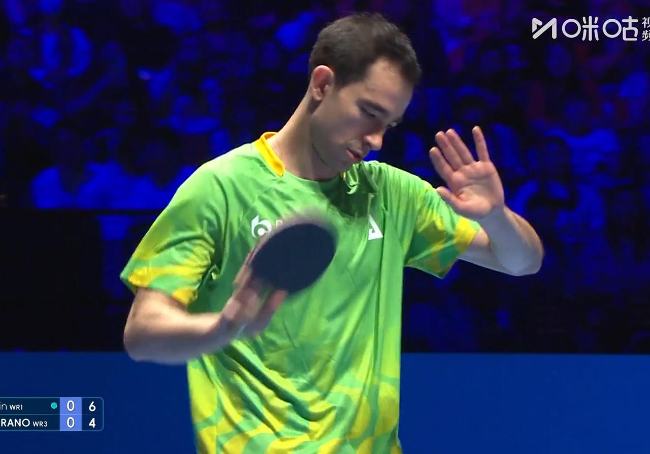 太吓人了!雨果今天又开始擦网擦边了。 要知道,去年雨果就是擦网太多了, 搞乱了王楚钦心态。 第一局开局 雨果低于桌面的救球, 秀了一把, 让王楚钦很生气, 还瞥了雨果一眼, 仿佛说:抢我风头,等着吧。 大头太可爱了。 3:3平之后, 王楚钦连赢3球, 6:3领先。 此时雨果又一个擦网+擦边, 打乱了大头节奏, 追到了7:8。 还好大头今年成熟了, 心态稳定, 连赢3球, 11:7拿下。