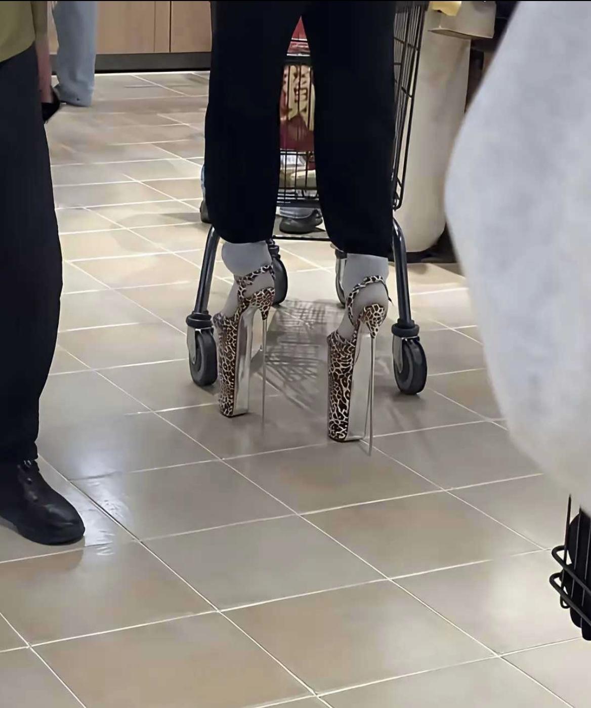 没想到真有人买这种鞋子穿,还出来逛超市