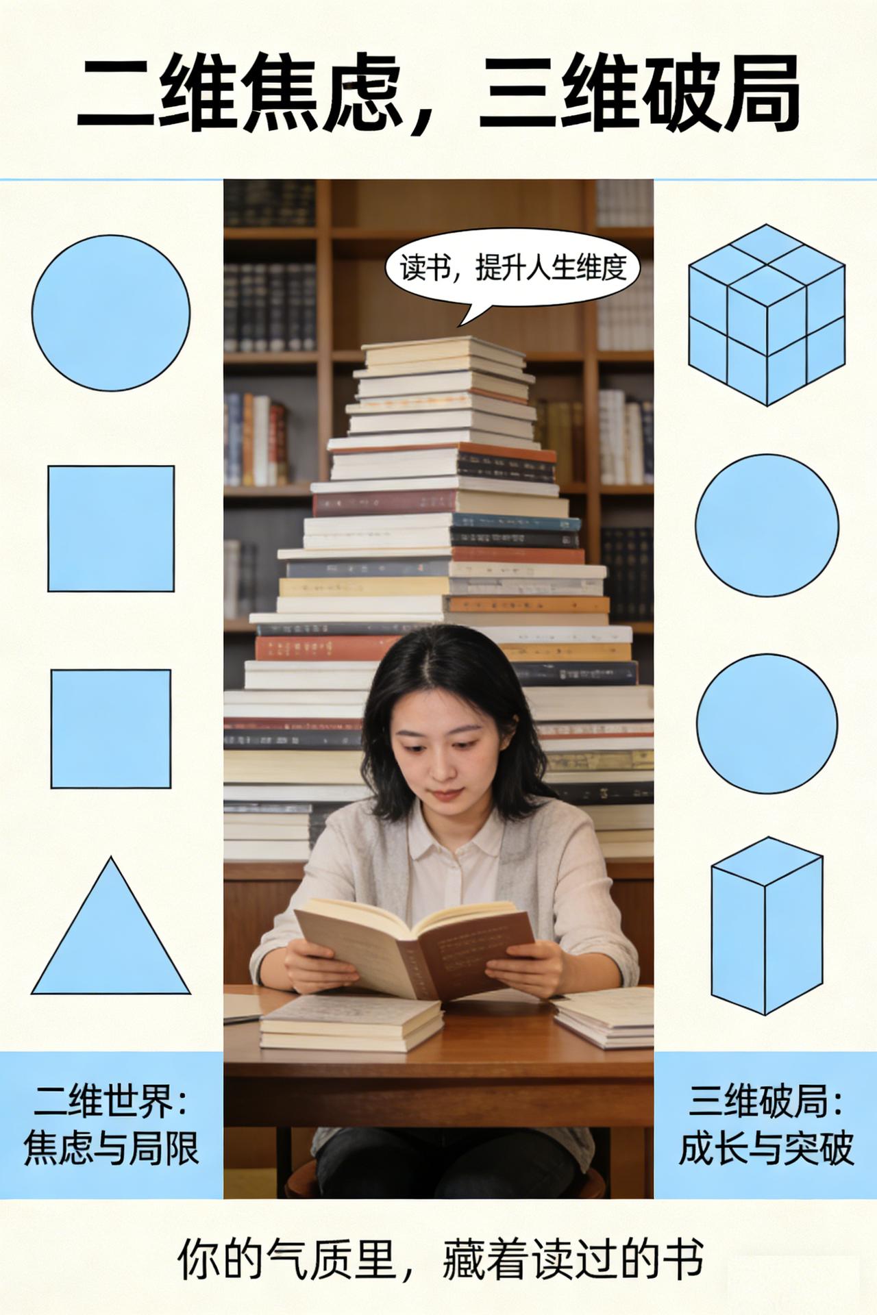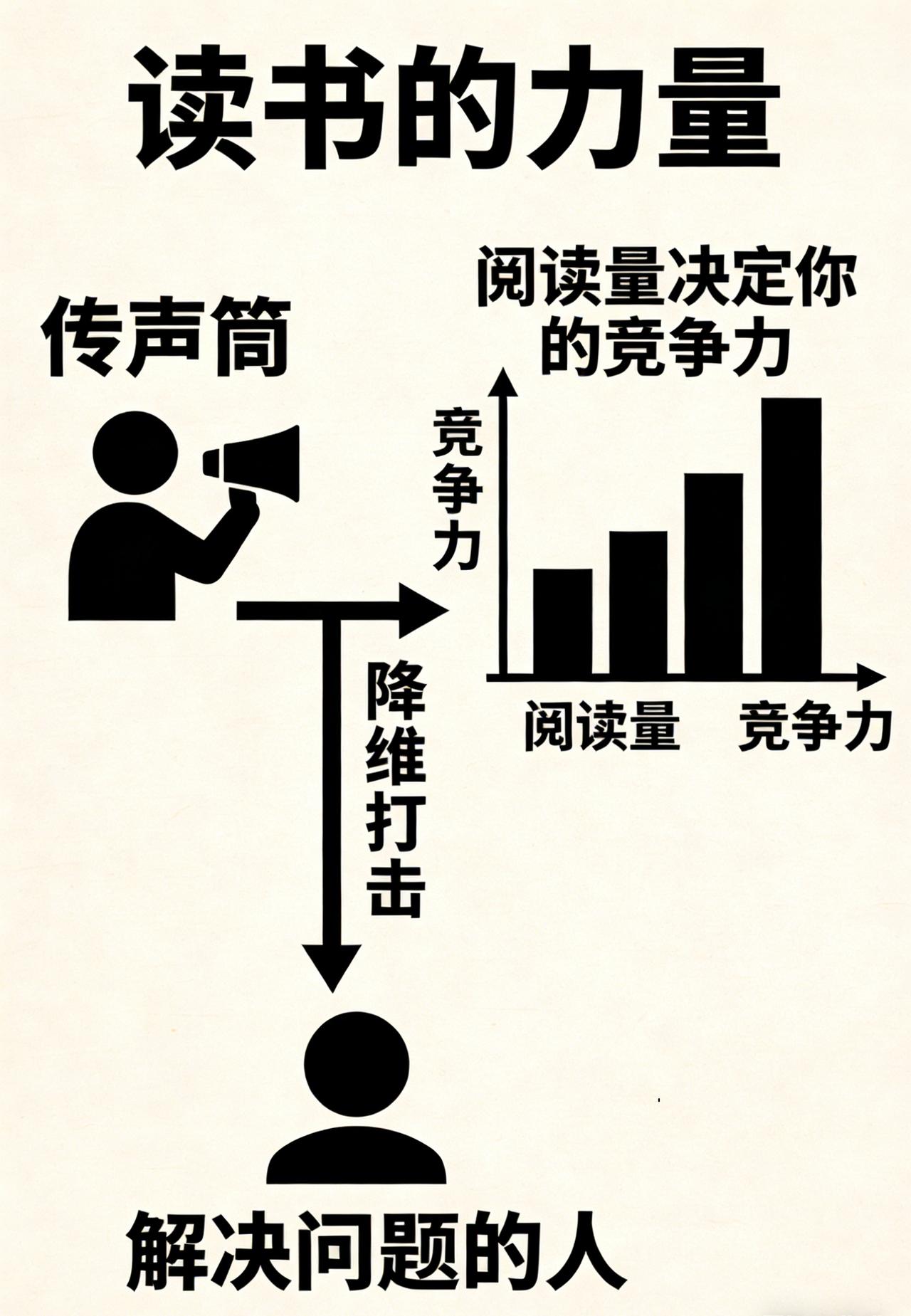 读书与不读书,过的是两种人生 你是不是也这样? 遇到问题,脑子里一片空白,只能刷手机找答案。 和人聊天,话到嘴边,却总觉得词不达意。 做决定时,凭感觉瞎蒙,事后又后悔不已。 你不是不够努力。 你只是,太久没读书了。 读书和不读书的人,差别真的不止一点。 那是思维方式的鸿沟,是人生选择权的差异。 核心概念:读书,是在给大脑装“系统” 不读书的人,大脑运行的是“出厂设置”。 依赖经验、直觉和道听途说。很容易被情绪绑架,被观点带跑。 而读书,是在给你的大脑安装“高级操作系统”。 每读一本好书,就多一个看世界的“App”。 读历史,你学会了用周期看兴衰。 读心理,你懂了行为背后的动机。 读传记,你站在巨人肩膀上思考。 这差别,不是知识量的多少。是“活法”的维度不同。 一个在二维平面爬行,一个在三维空间飞行。 面对同样的困境,前者只会焦虑,后者能拆解、分析、破局。 领导让两人同时汇报工作。 小李说:“张总,客户说价格太贵了。” 小王说:“张总,客户反馈价格贵,我分析了《影响力》里的‘价格锚点’理论。建议我们推出一个更贵的方案做对比,来凸显现有方案的性价比。这是竞品分析报告。” 结果一目了然。 小李只能传递原始信息,是个“传声筒”。 小王能分析信息、提供策略,是“军师”。 这,就是读书带来的“降维打击”。 别怕,你不必一年读100本。 你只需要,让读过的每一本,都为你工作。 第一步:微习惯,骗过你的大脑 别一上来就啃大部头。 每天只读5分钟。就5分钟。 目标是“翻开书”,不是“读完书”。 这个动作小到不可能失败。坚持一周,你会不自觉地读更久。 第二步:带着问题去“搜刮” 不要为了读书而读书。 带着你当下的困惑去读。 “我沟通总得罪人怎么办?” → 去读《非暴力沟通》。 “我总存不下钱怎么办?” → 去读《小狗钱钱》。 把书当工具,你是主人,不是奴隶。 第三步:输出,哪怕只有一句话 读完一章,合上书。 用自己的话,写一句总结。 发在朋友圈,或者记在备忘录。 能“输出”的知识,才是你的。 写在最后 读书不会让你瞬间暴富。 但它能让你在人生低谷时,内心有光,手里有伞。 不读书的人,只能活一次。 读书的人,可以活上千次。 从今天起,别让你的大脑,一直“裸奔”。 👇 转发给那个你关心的朋友,一起变好。 分享文章,点击 愿你在生活里,不卑不亢,底气十足