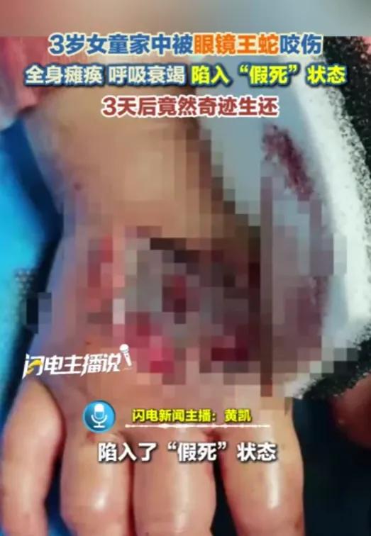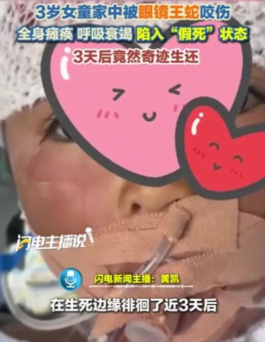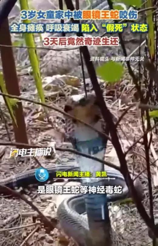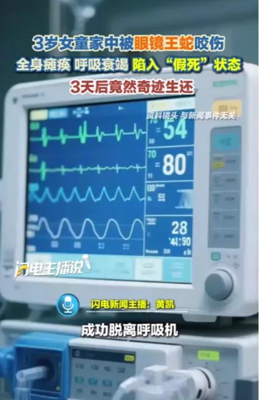 这场意外,真的是最惊心动魄的“假死”! 云南一个3岁小女孩,在家玩时被眼镜王蛇咬了一口,半小时后送到医院,整个人就像“断了电”。眼睛睁不开,全身不能动,连呼吸都没了。 这不是电影情节,是真实发生的生死劫。孩子从云南文山转到广西百色,再转到南宁,整整三天,靠呼吸机维持着最后一丝气息。家人以为她昏迷了,医生却说这不是昏迷,是神经毒素把全身肌肉“锁死”了。 最震撼的一幕发生在第3天。当足量抗蛇毒血清输入体内,仅仅1小时后,这个“假死”了72小时的孩子,突然睁开了眼睛,手脚开始活动,意识完全清醒!医生说:“她之前不是昏迷,是严重肌无力。” 这场生死营救同时也暴露了一个残酷现实。抗蛇毒血清大多集中在大城市医院,而蛇咬伤往往发生在偏远农村。很多网友都在问:如果这孩子家离大医院再远一点,结局会怎样? 春夏蛇类活跃期到了,记住!被蛇咬伤别用嘴吸,别乱挤,第一时间记住蛇的特征,直奔有血清的医院。有时候,生死真的只差那一针。