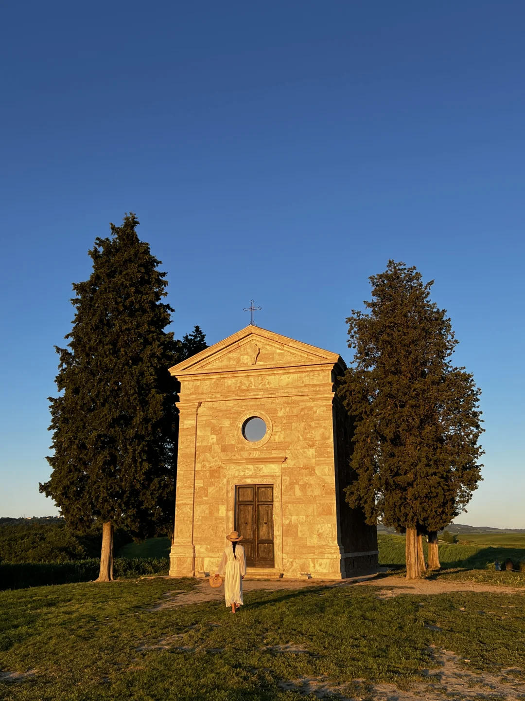 托斯卡纳浪漫地~丝柏树下的教堂与麦田美到童话,建议日落时分前往。