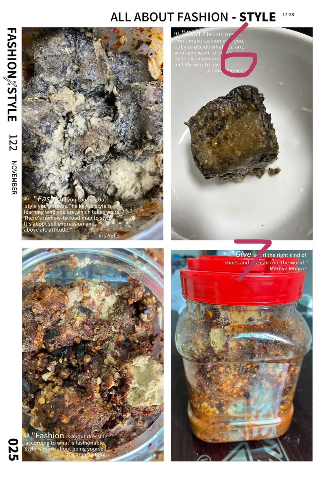 🍀入坑的是6,贵州毕节的亲戚自制的腐乳,裹的是花椒茴香和盐,其次分别是8、1、7(都是手工自制的),不一样的美味,但有点咸了或辣了。