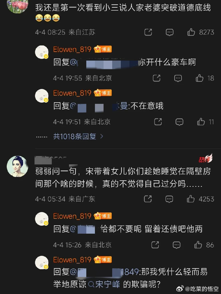 而且,她一个第三者,居然说原配突破道德底线,「低声下气恳求她」