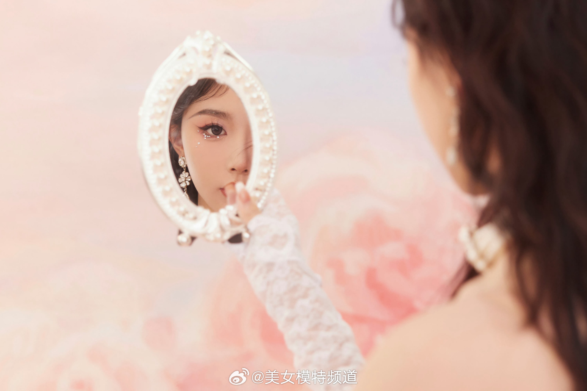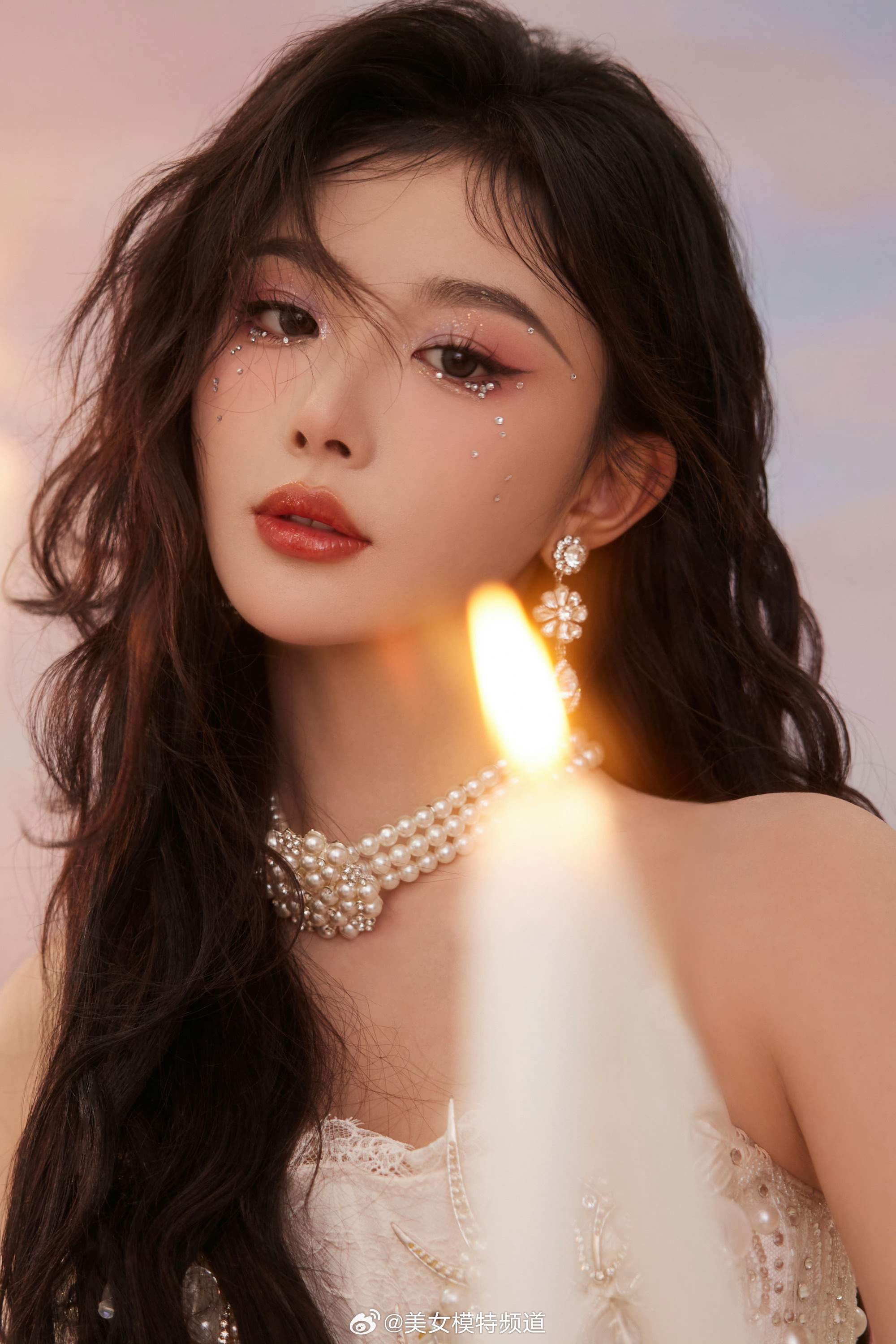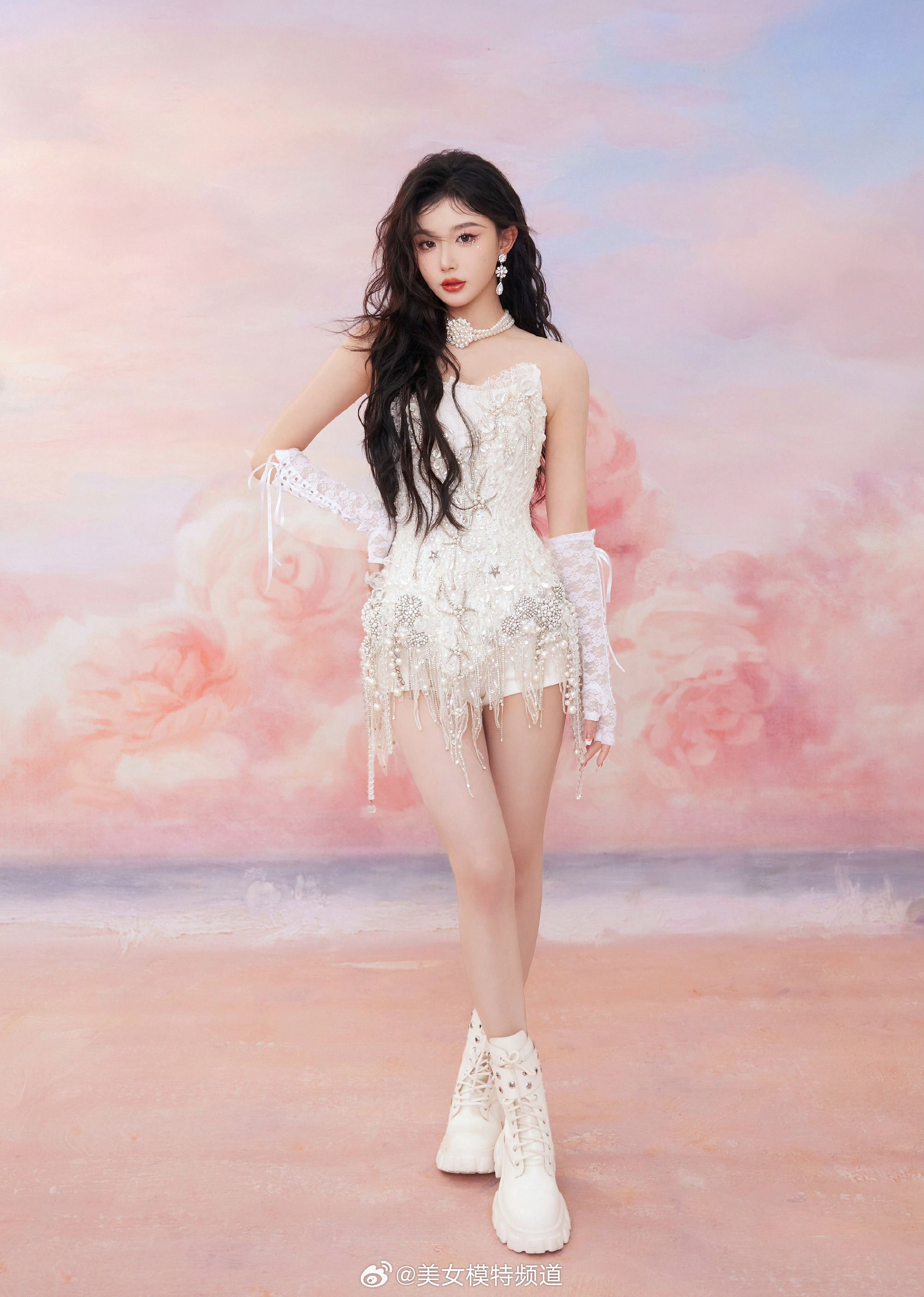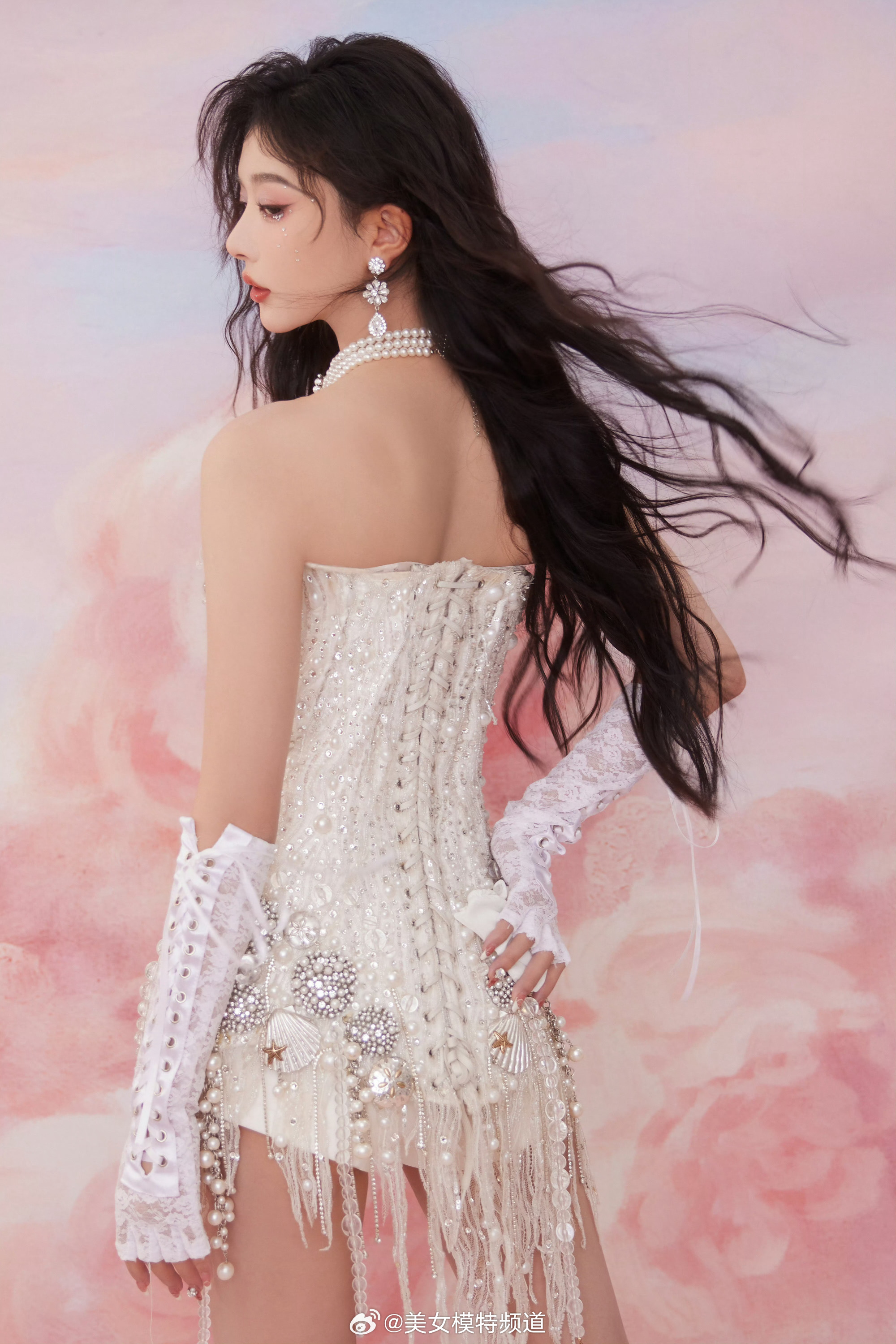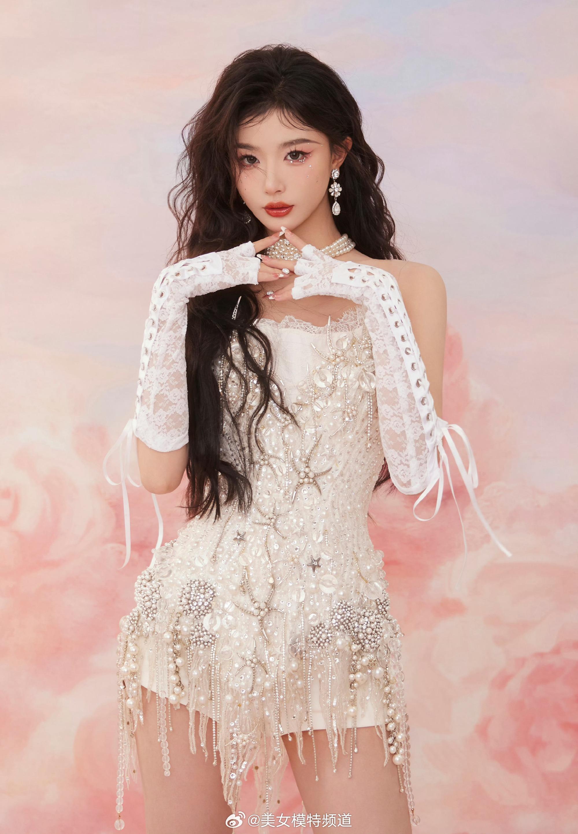 孔雪儿白色蕾丝裙流光溢彩