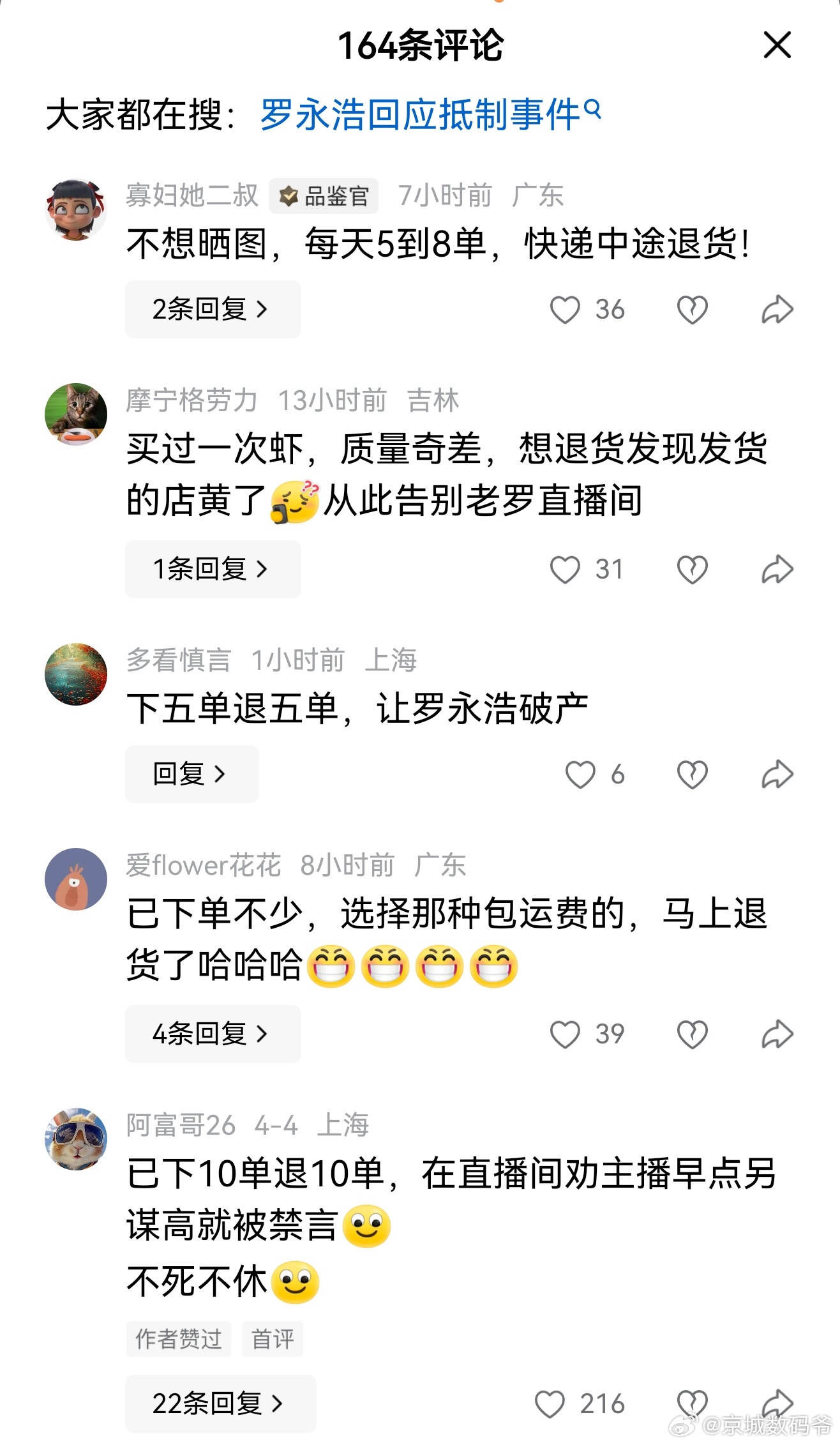 老罗直播间被“情绪退货”刷屏,真不是闹着玩的!刚刷到“交个朋友”突遭大规模退货,