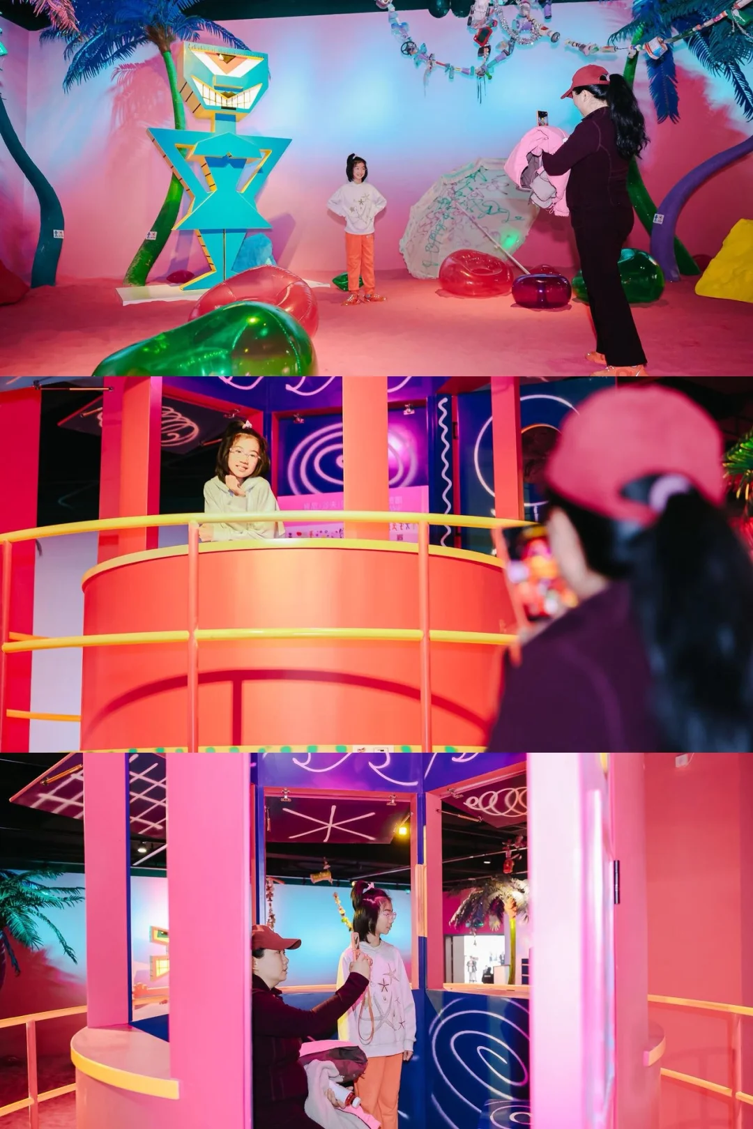 这次是华中首次肯尼·沙夫大展,直接把迈阿密粉色沙滩搬进馆里,色彩真的很亮眼。