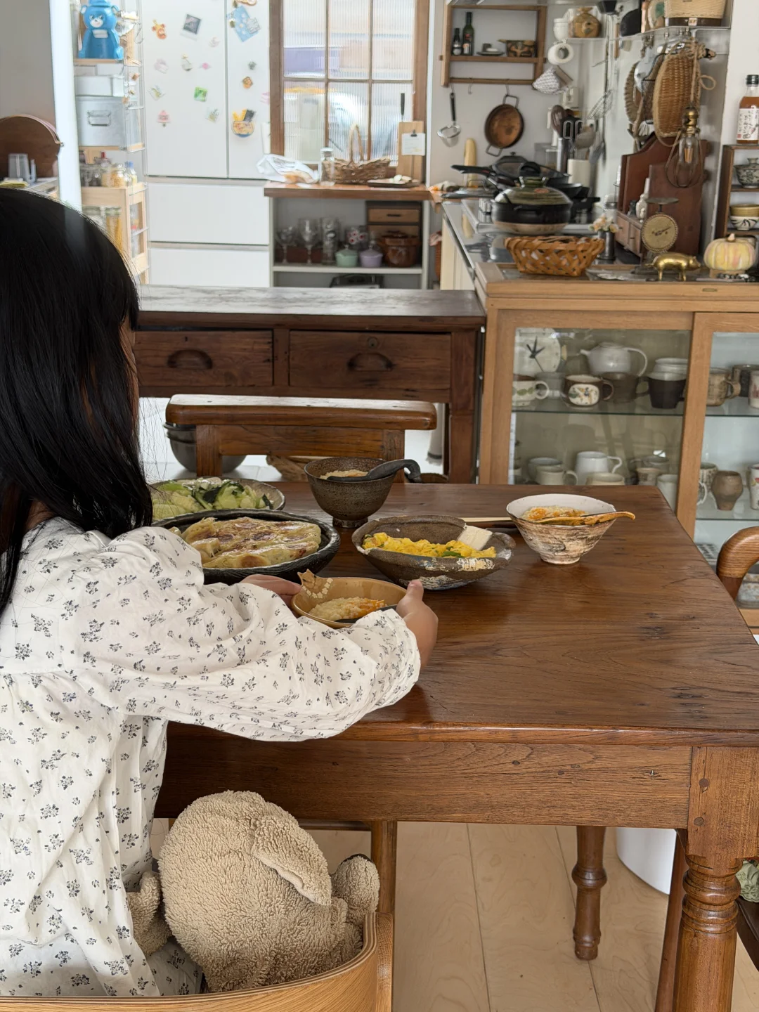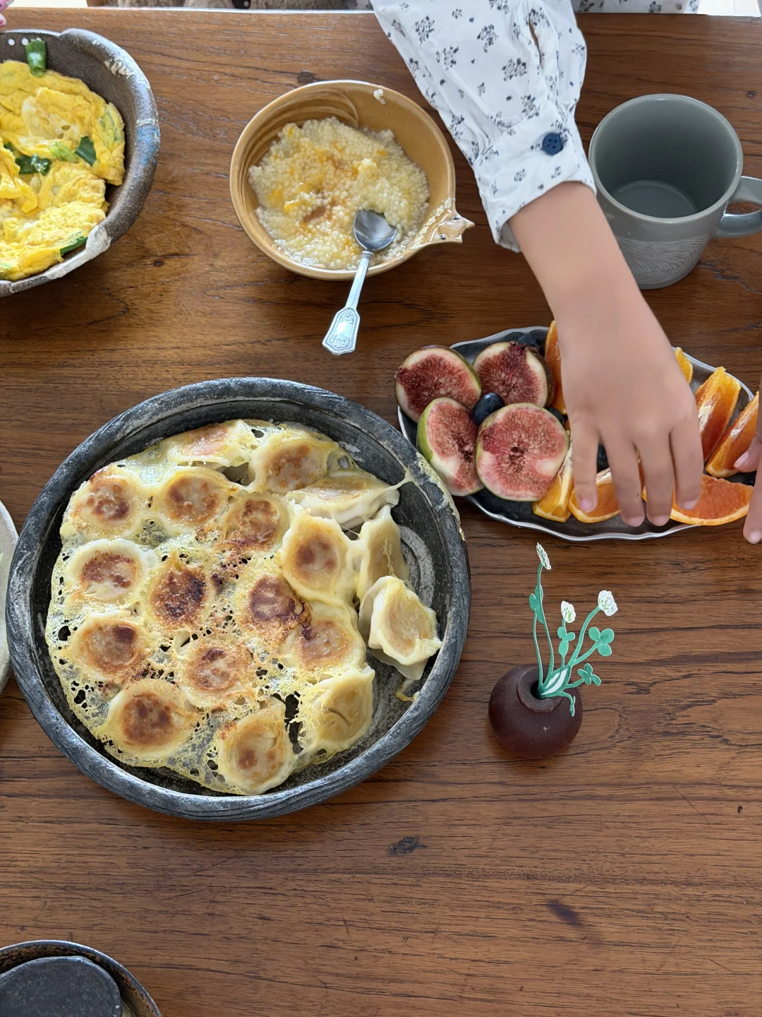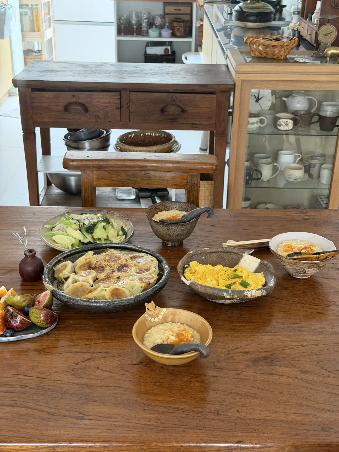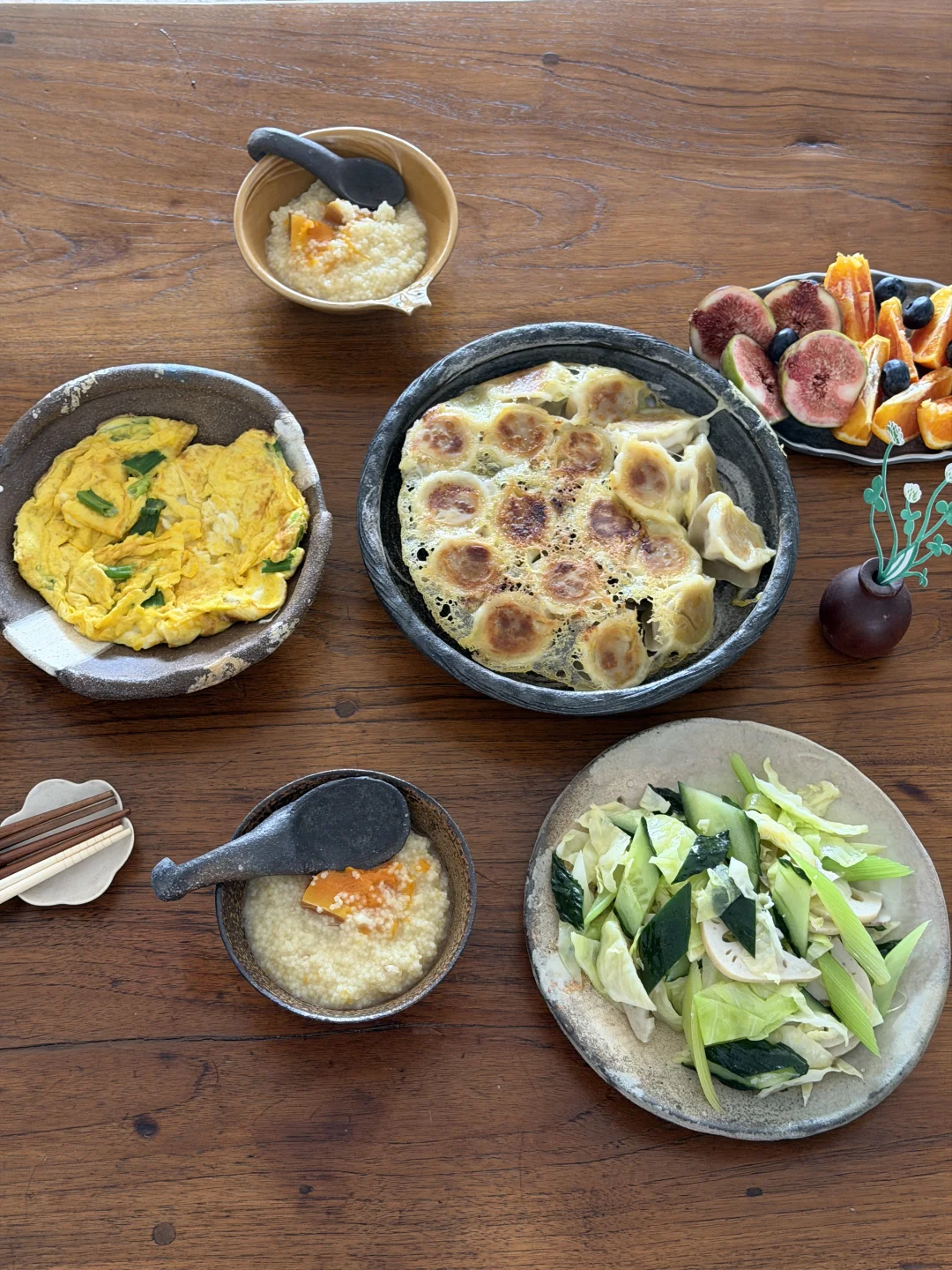 今天早餐吃冰花煎饺、南瓜小米粥、素什锦和小葱炒鸡蛋。 假期睡到自然醒,然后准备一桌丰盛的早餐,一天两顿饭就可以了😉