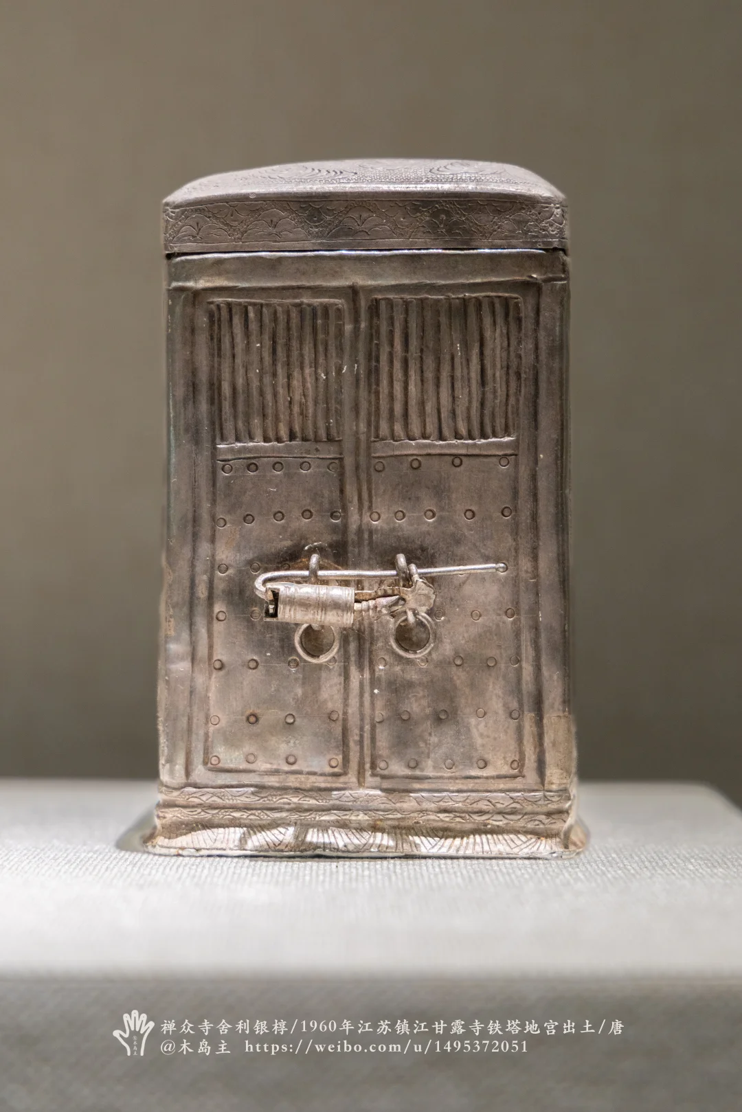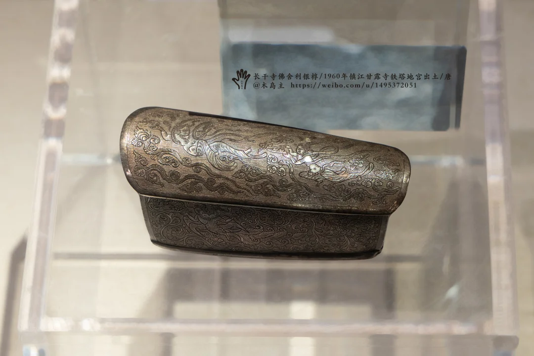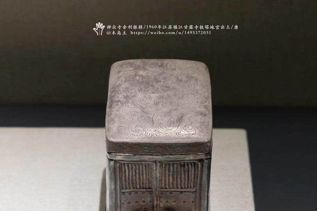 唐宝历年间(公元825~826年),李德裕创建甘露寺。唐大和三年(公元829年),李德裕将从南京禅众寺获得的156颗舍利迁至镇江甘露寺,重新打开石塔地宫,用金棺银椁裹以锦绣九重瘗藏,为穆宗皇帝祈福。图5-8的银椁是这次用的。