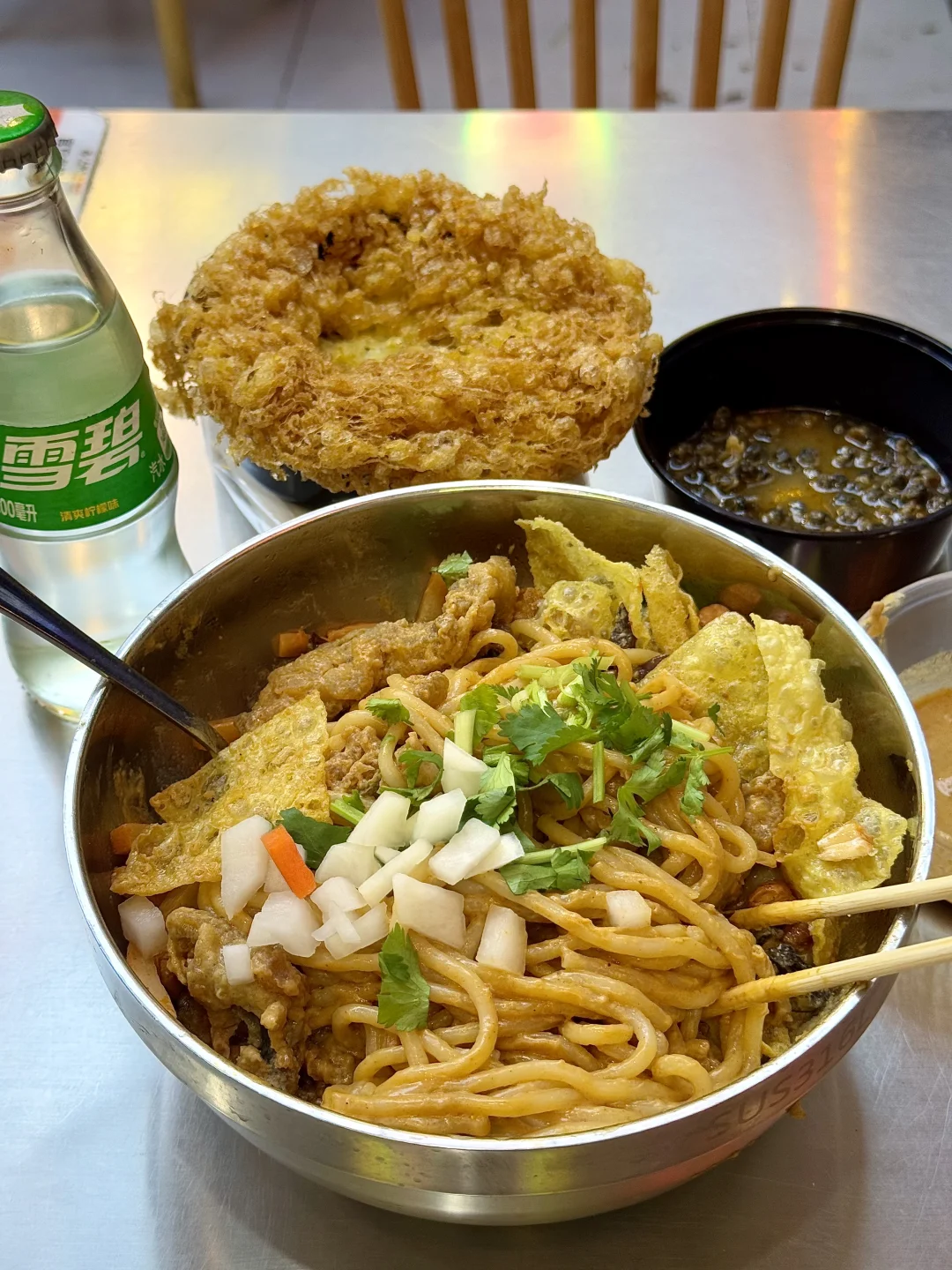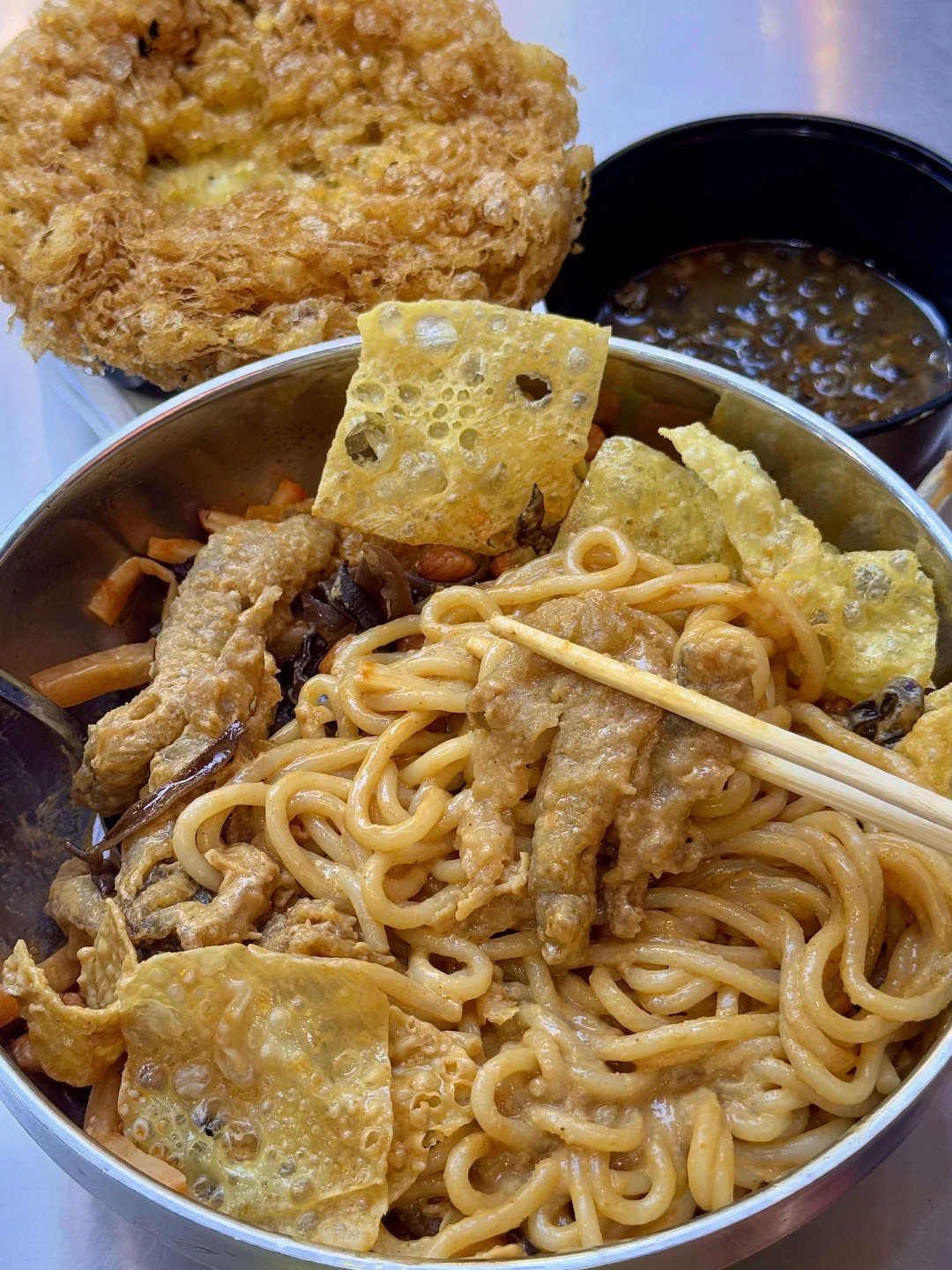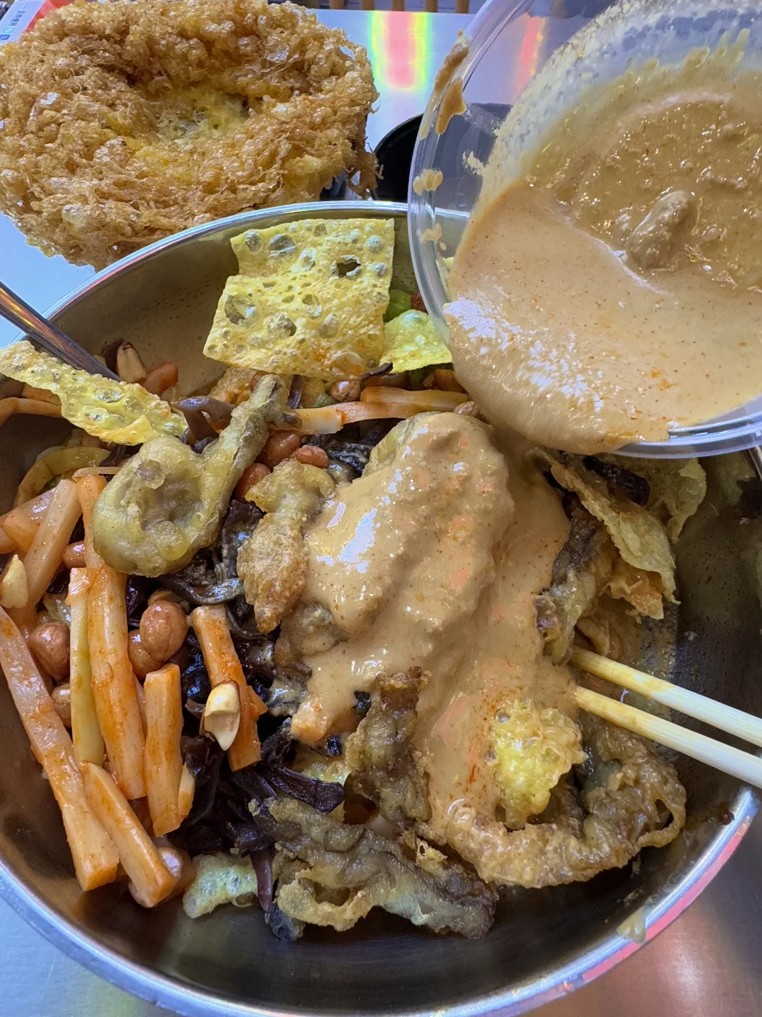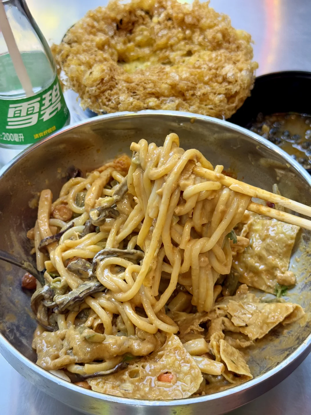 干拌麻酱螺蛳粉!!!真的巨美味!黏黏糊糊的很浓郁简直人间美味。。。 现炸出来的黄金脆菇脆脆的好上头,比肉还好吃!