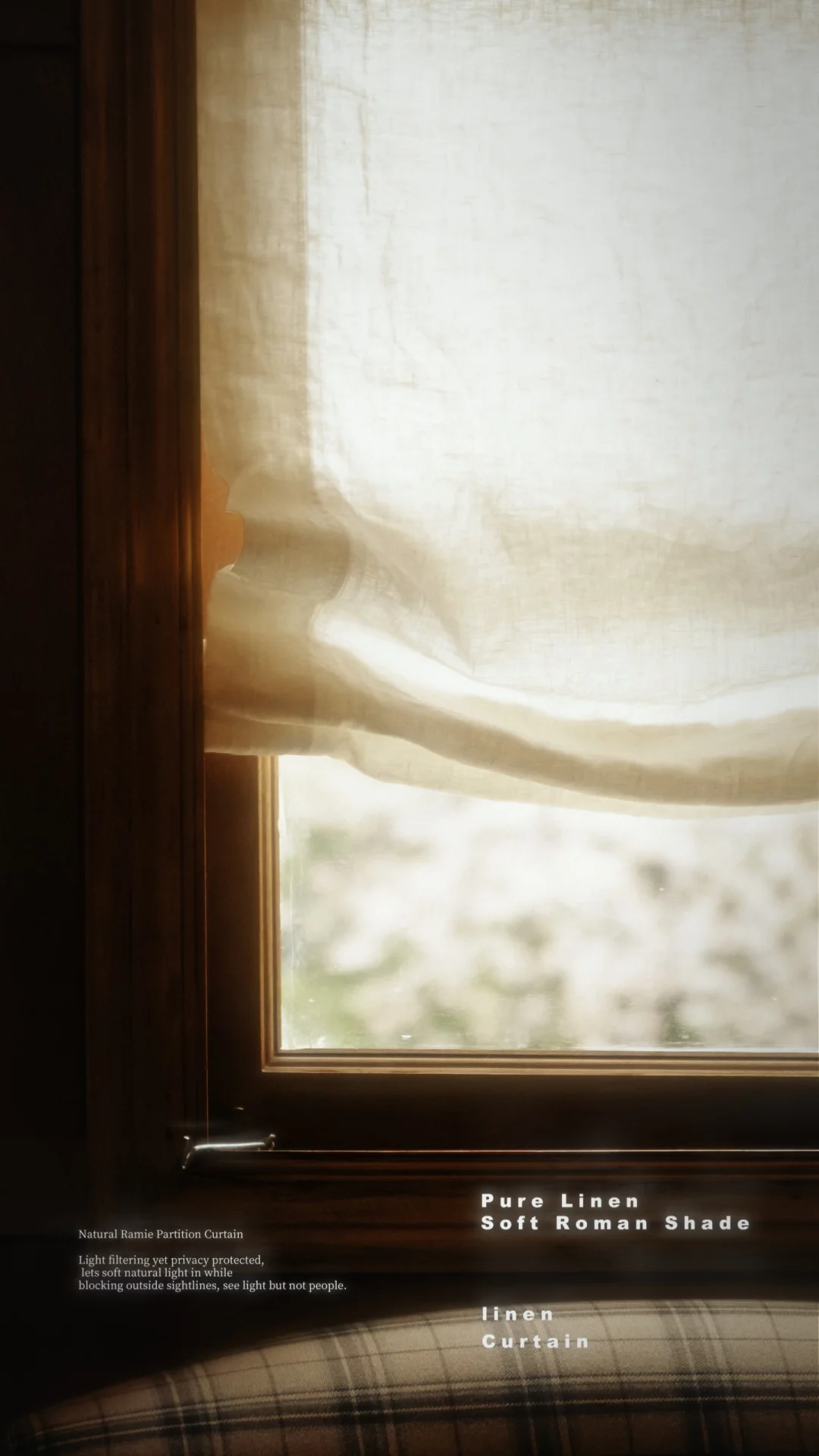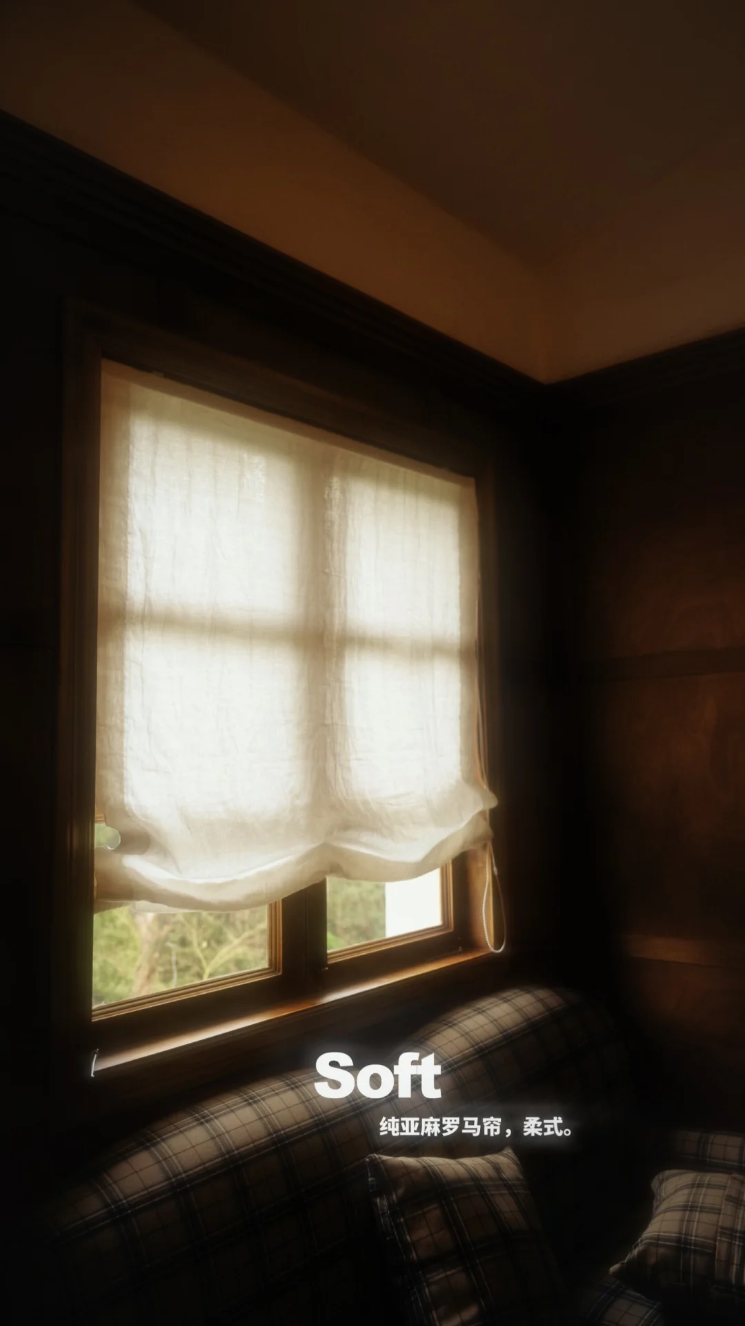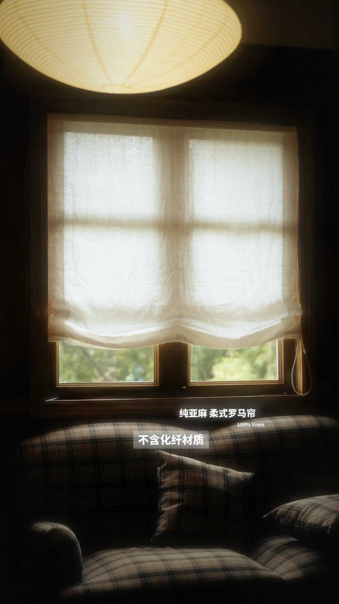 本原亚麻布艺 纯亚麻窗帘 柔式罗马帘