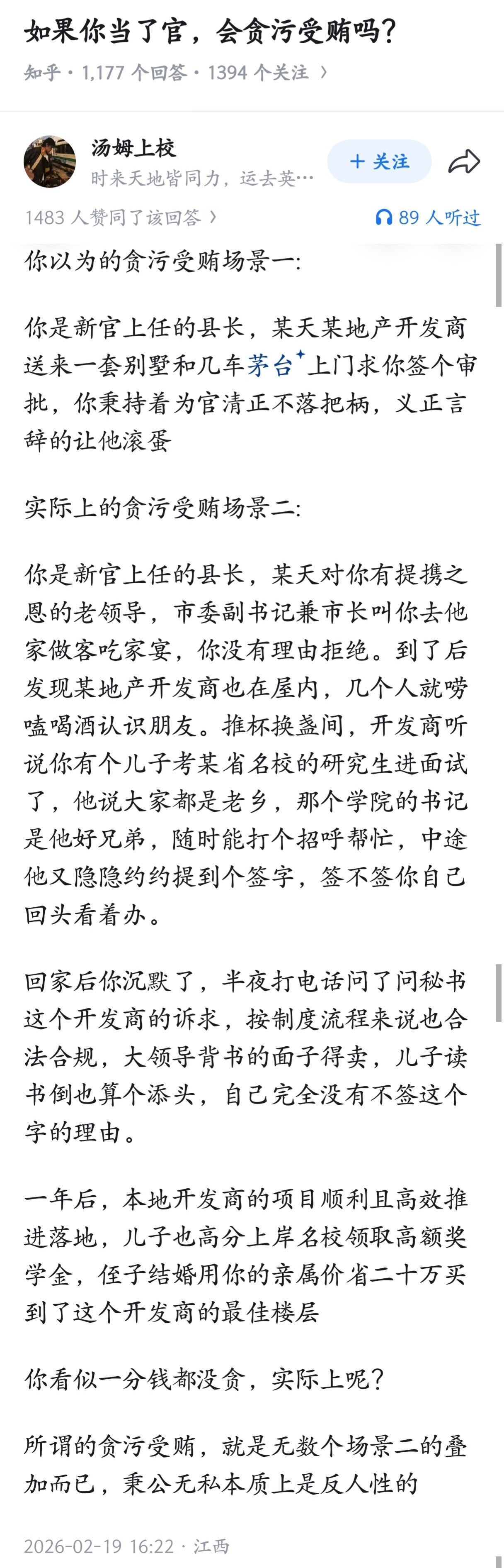 如果你当了官,会贪污受贿吗?