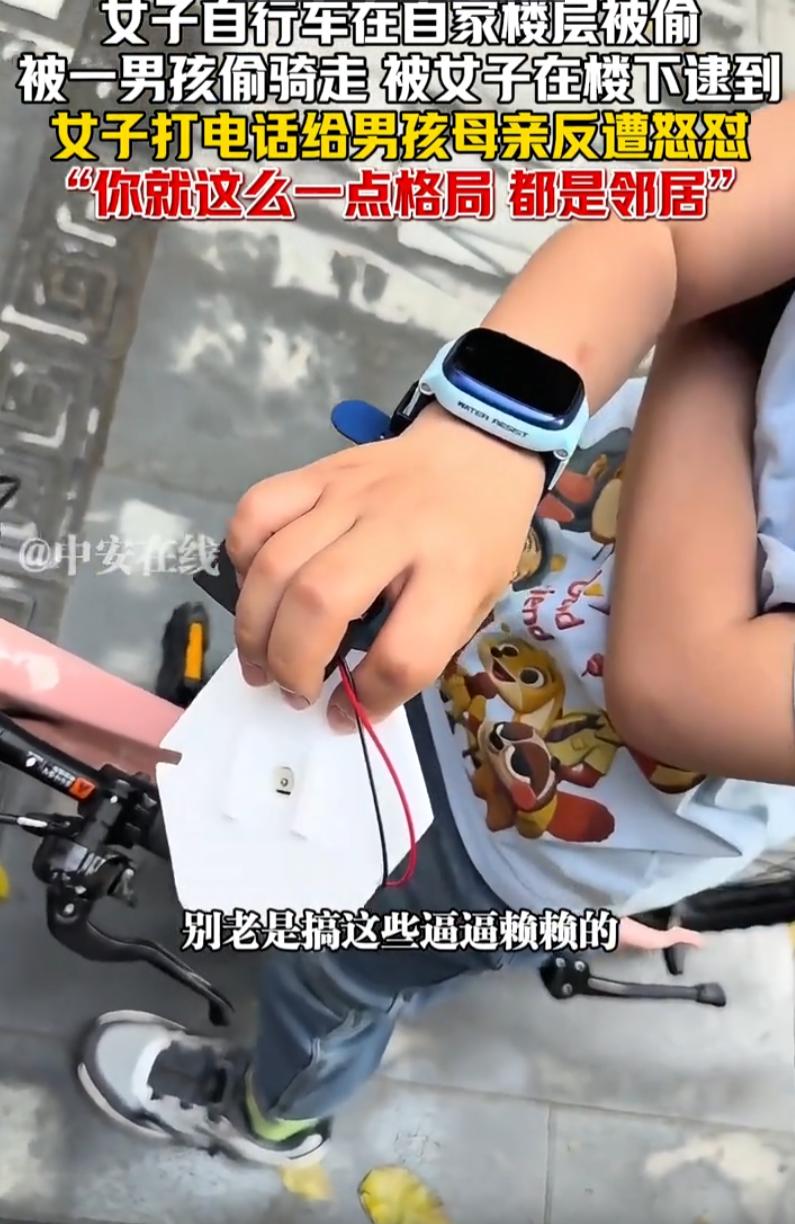 万万没想到!广东,女子发现自己放在楼层的自行车被一名男孩给骑走了,女子拦住对方,要求孩子家长给个说法,本想着道个歉说说软话就算了,谁知对方家长态度嚣张,怒斥女子不要逼逼赖赖,哪怕报警后要通报到孩子学校,家长依然不认错 女子平时把自行车放在自家的架空层上,平时放着都好好的,结果这天却发现被一名男孩给骑走了,而且孩子还不是同一楼层的,一个住七栋,一个住一栋,几乎没有任何交集 女子拦住孩子,没发火,也没动手,就是让孩子给妈妈打个电话,想着家长来了,说两句软话,道个歉,这事就过去了。毕竟就是个孩子,谁家孩子不淘气?她要的不过是一个态度 可电话那头,孩子妈妈的反应完全出乎意料 对方不仅没道歉,上来就怼:这不算偷,你少拿法律词在这儿逼逼赖赖,该报警报警。语气硬得像是自家孩子受了多大委屈 女子愣了。她本来真没想闹大,可对方这个态度,反倒让她觉得这事不能就这么算了 过了一会儿,男孩母亲到了现场。原以为见面了能缓和一下,结果这位妈妈更绝——她反过来要求女子给他们道歉。理由是:你拦着我孩子,吓着他了 也就是说,她家孩子没经过允许骑走别人的车,这不是问题;但车主拦住孩子问清楚,这是问题,而且是很大的问题,大到需要道歉 随后女子选择报警,可即便到了派出所,男孩母亲的态度依然那样,民警表示这个事要通报到男孩的学校,可母亲却说无所谓,道歉是不可能的 说实话,这件事让人心里堵得慌,不是因为那辆自行车,而是因为一个很简单的道理:如果连骑走别人东西都不叫错,那什么叫错?如果孩子做错事家长不但不纠正反而护着,那这孩子以后还会觉得拿别人东西有问题吗? 说到底,这位妈妈不是不知道自家孩子理亏,她是在赌对方不会较真。她以为用嚣张能压住对方,用道德绑架能让对方退让,用邻居情分来当挡箭牌。可问题是,情分是双方给的,不是你犯错时拿来抵账的。