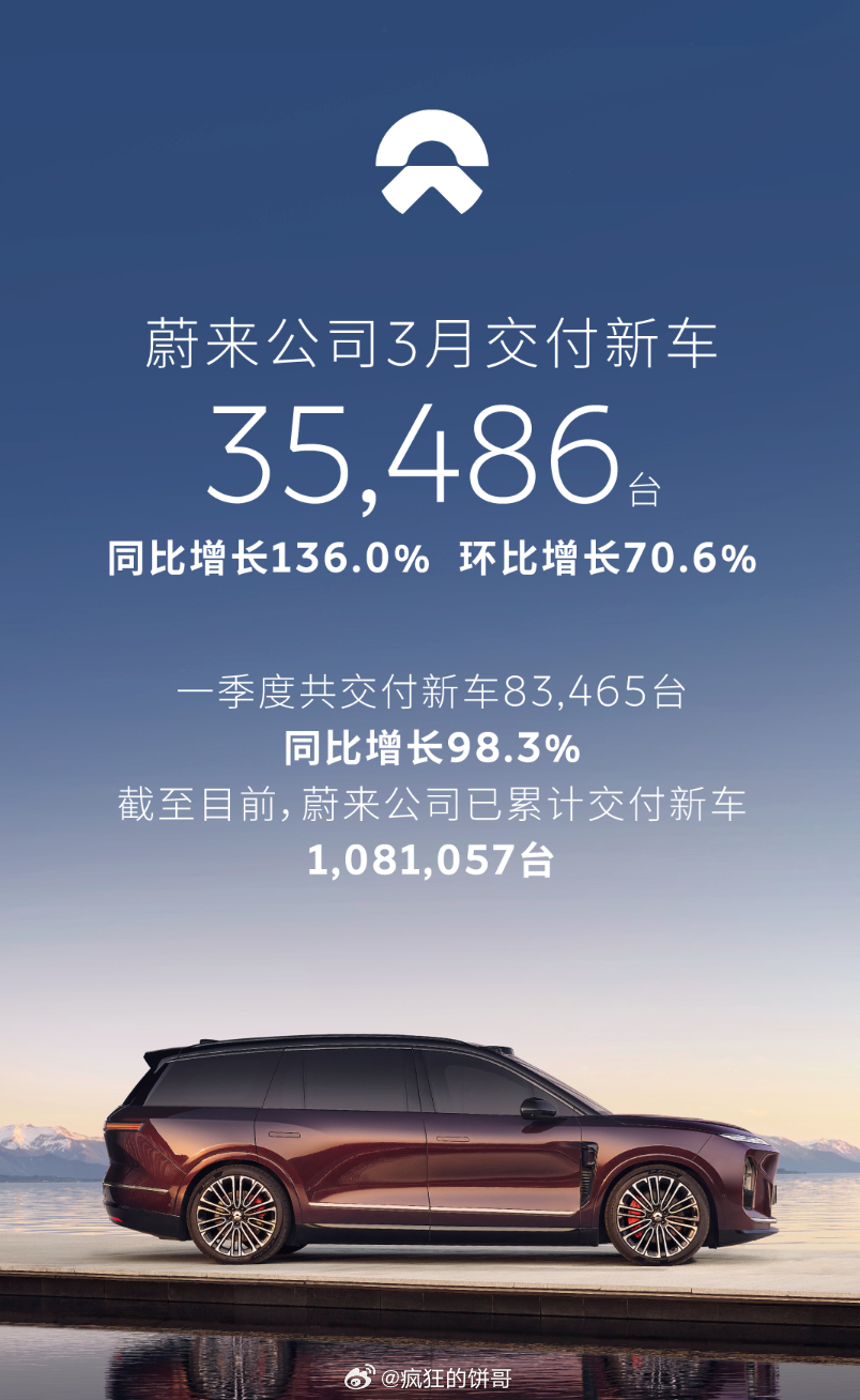 说句实话,我倒是挺期待蔚来从网上喷子说的"亏损王"变成盈利王,3月蔚来公司交付35,486台,实现了大幅度的双增长,而蔚来ES8交付16,255台,前两天全新蔚来ES8交付突破9万台,上市195天平均每天交付461台.....