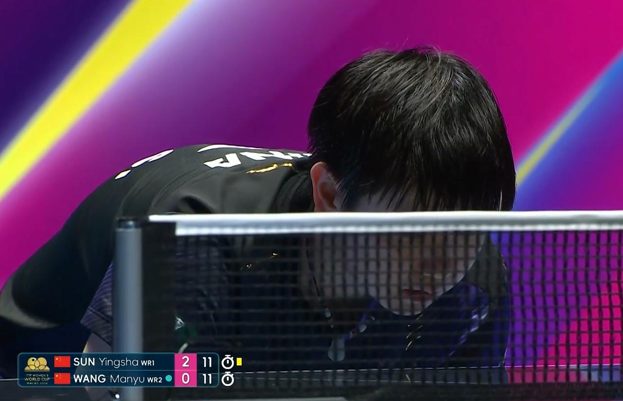 我去!孙颖莎正手杀疯了,正手对抗,王曼昱貌似1分没得。 前两局孙颖莎全部拿下。 第三局 两人开局胶着, 3:3平后, 鳗鱼反手连得2分, 5:3拉开比分。 鳗鱼正手打丢了机会球, 孙颖莎6:5反超。 王曼昱叫了暂停, 暂停回来, 孙颖莎10;8拿到局点, 王曼昱又是靠反手连得3分, 11:10拿到赛点。 孙颖莎又靠正手连得3分, 13:11又拿下一局。 目前大比分, 孙颖莎3;1领先了。