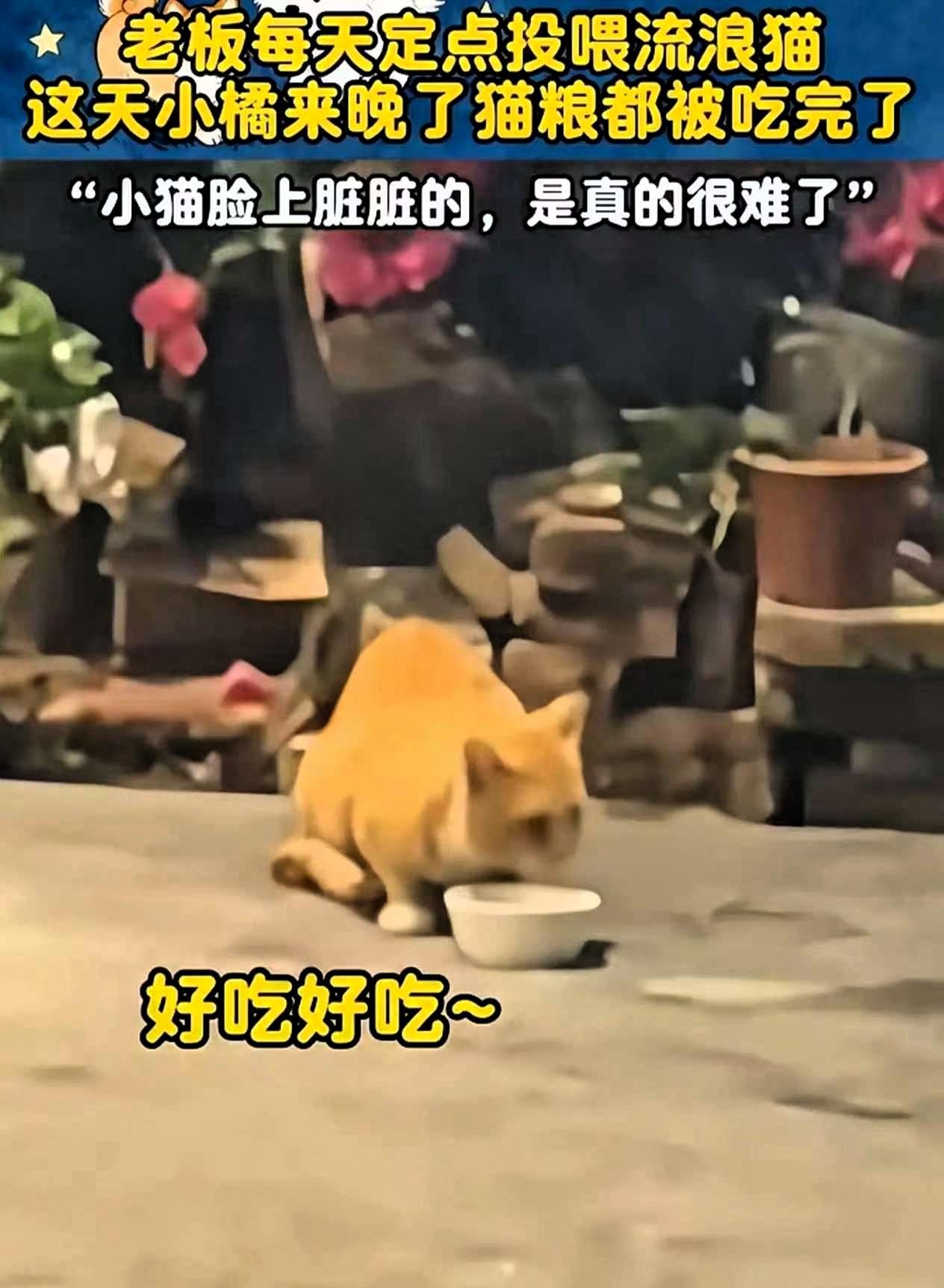 流浪猫因为来晚了,错过了男子的投喂时间,正当它准备饿着肚子转身离开时,男子却带着