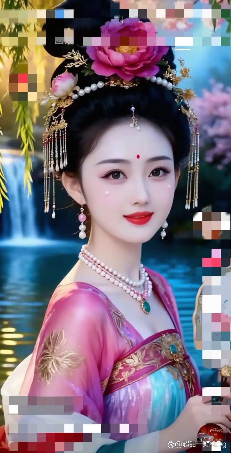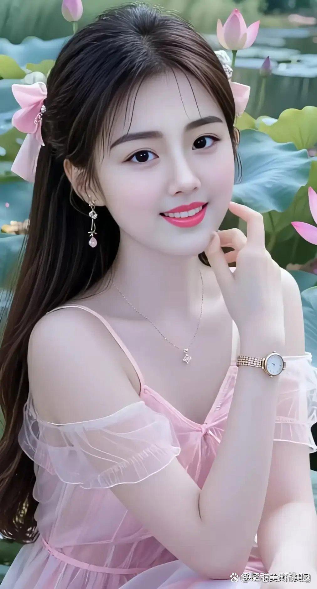 夏日海边少女,粉色旗袍花仙子