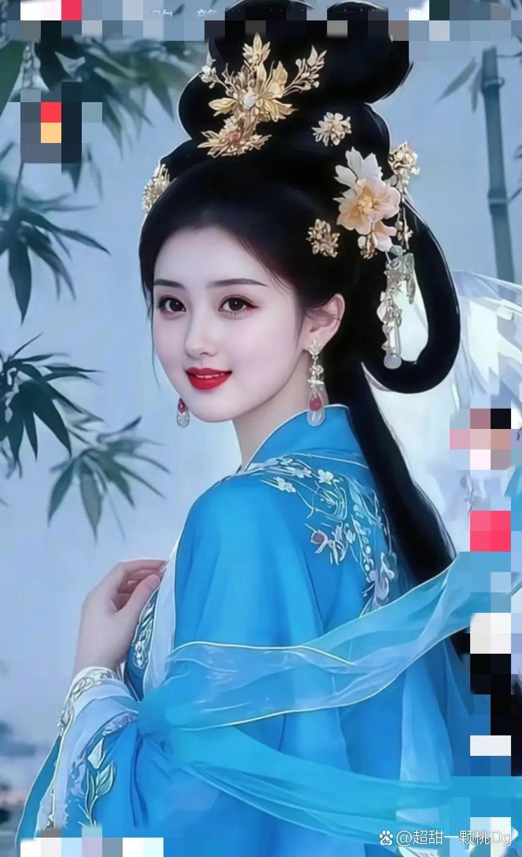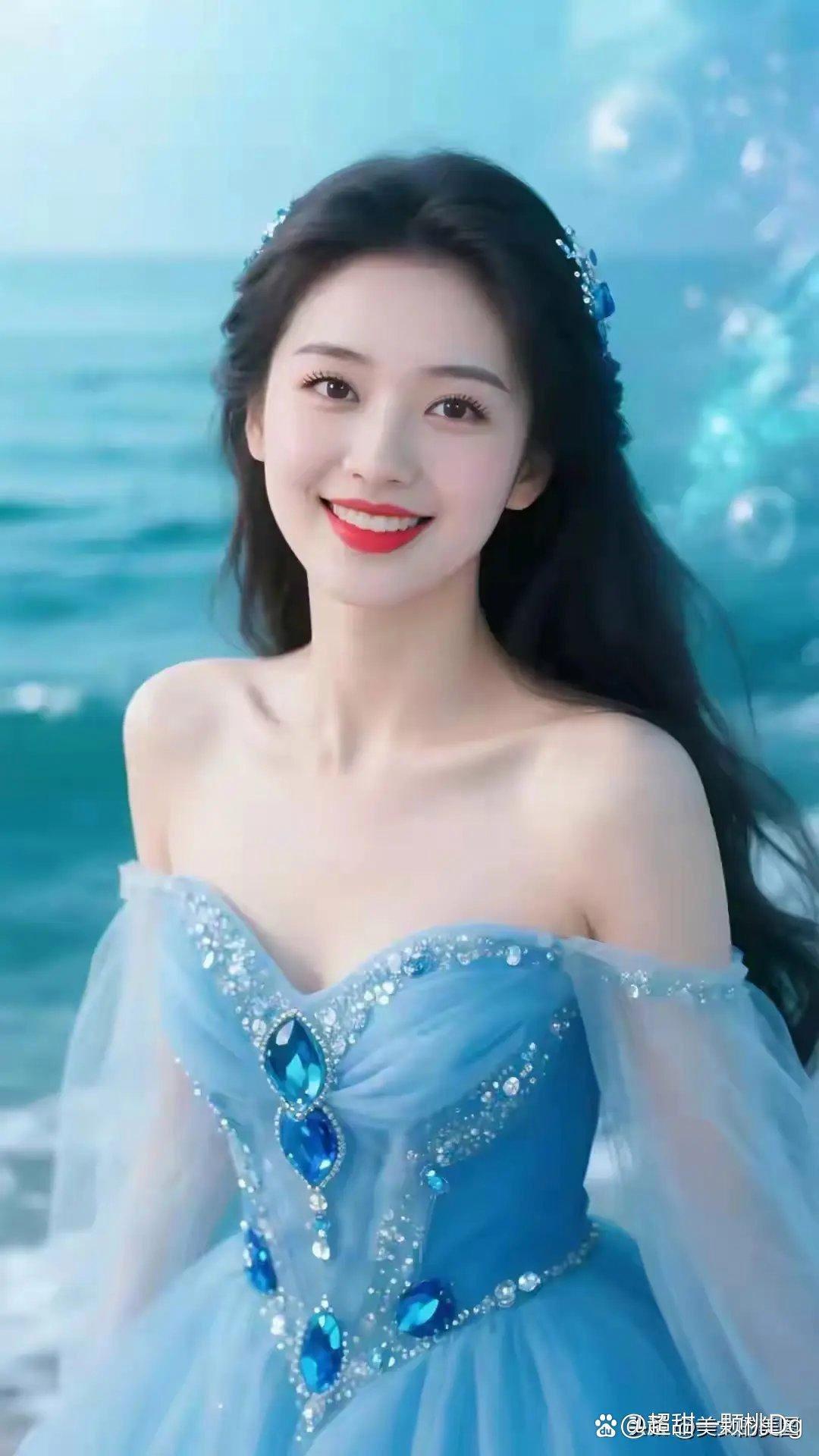 梦幻蓝裙,优雅姿态,静谧时光。