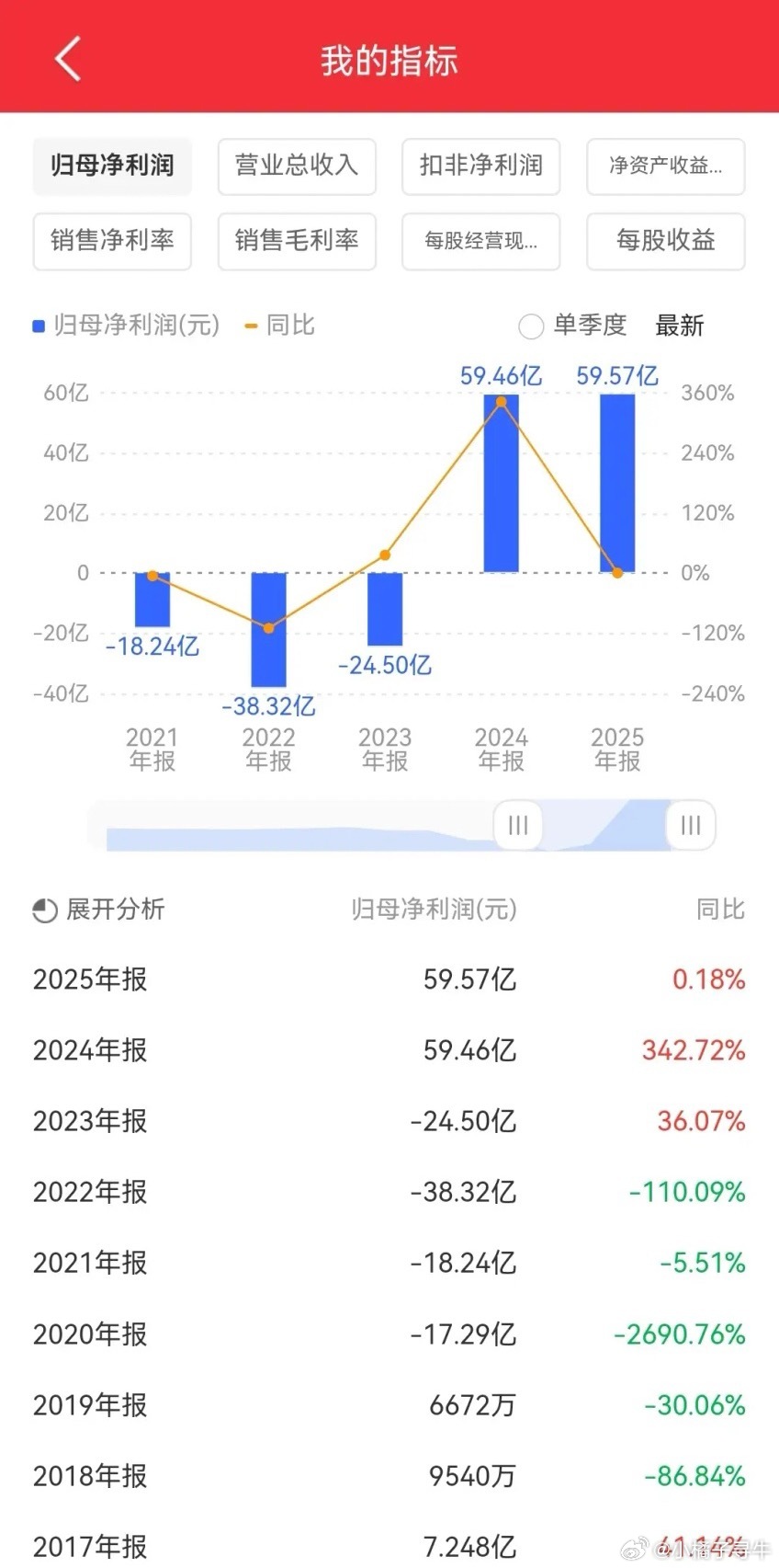 后来到2023年时,赛力斯股价跌到了23元的时候,再次开启狂涨之路,到去年十月份最高涨到了174元,这一波又涨了近8倍。公司亏损的这几年股价一直大涨,这两年终于扭亏为盈,2025年年报营收1651亿元,归母净利润59.57亿元,双双创出新高。