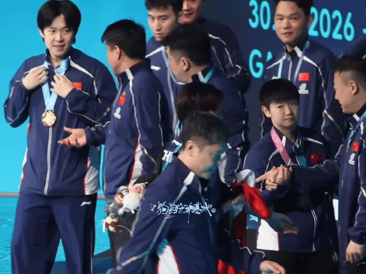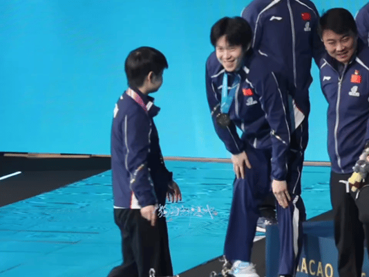 头哥这眼神开心幸福哦,莎莎和马指握手。 澳门世界杯结束,孙颖莎王楚钦夺得男女单单打冠军, 中国队收获了全部冠军, 赛后拍摄大合照, 莎莎走过去的时候,看了下坐着休息的头哥, 头哥边站起来边看莎莎, 挺开心。 莎莎和马导握手,然后走到左边准备拍照, 也和马导聊了一会。