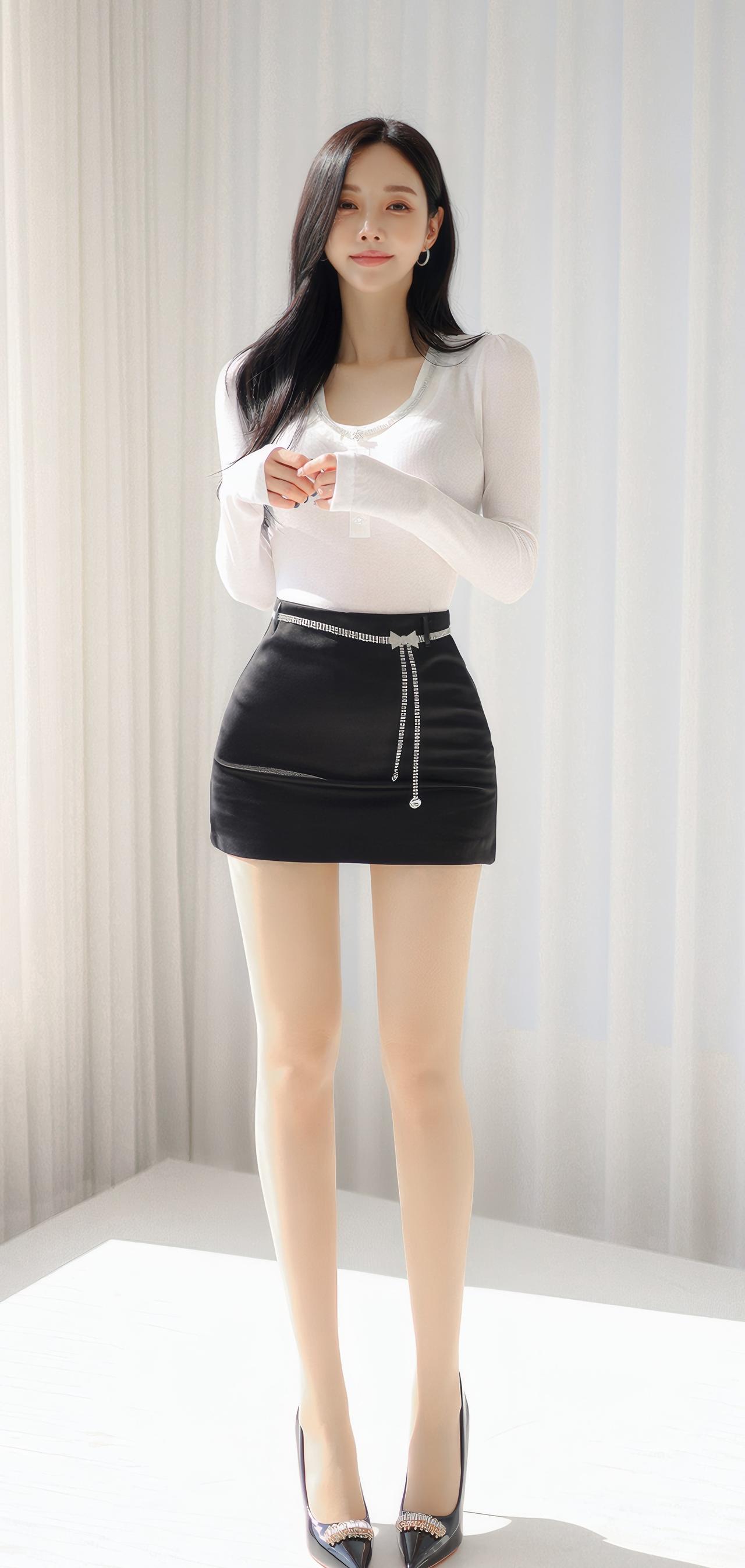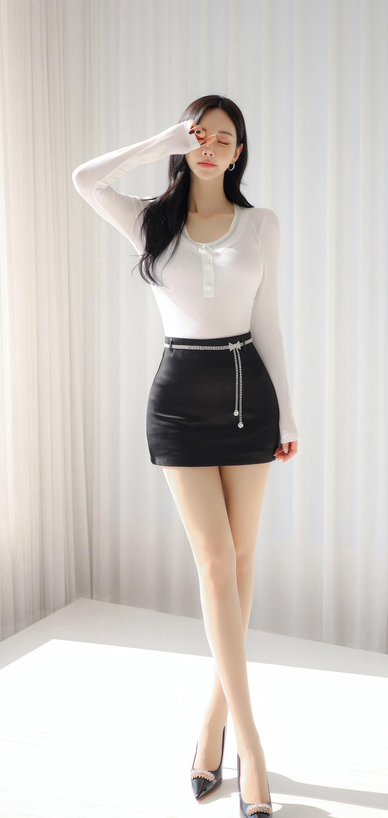 温柔甜美的白衬衫搭配黑色短裙,清新自然,气质满分!🌸💕