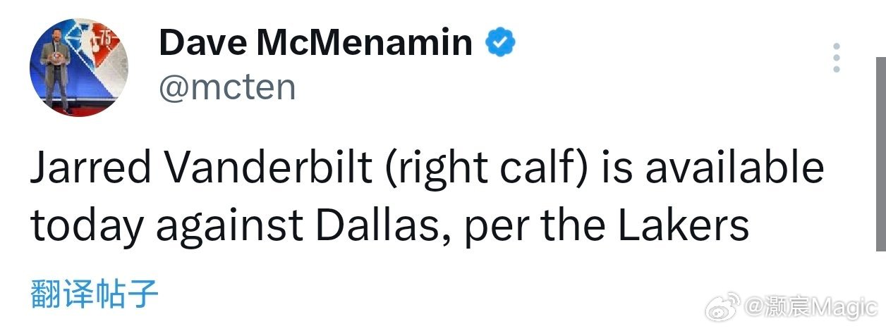 Dave:范德比尔特(右小腿酸痛)状态升级为可以出战!湖人vs独行侠41岁詹姆斯