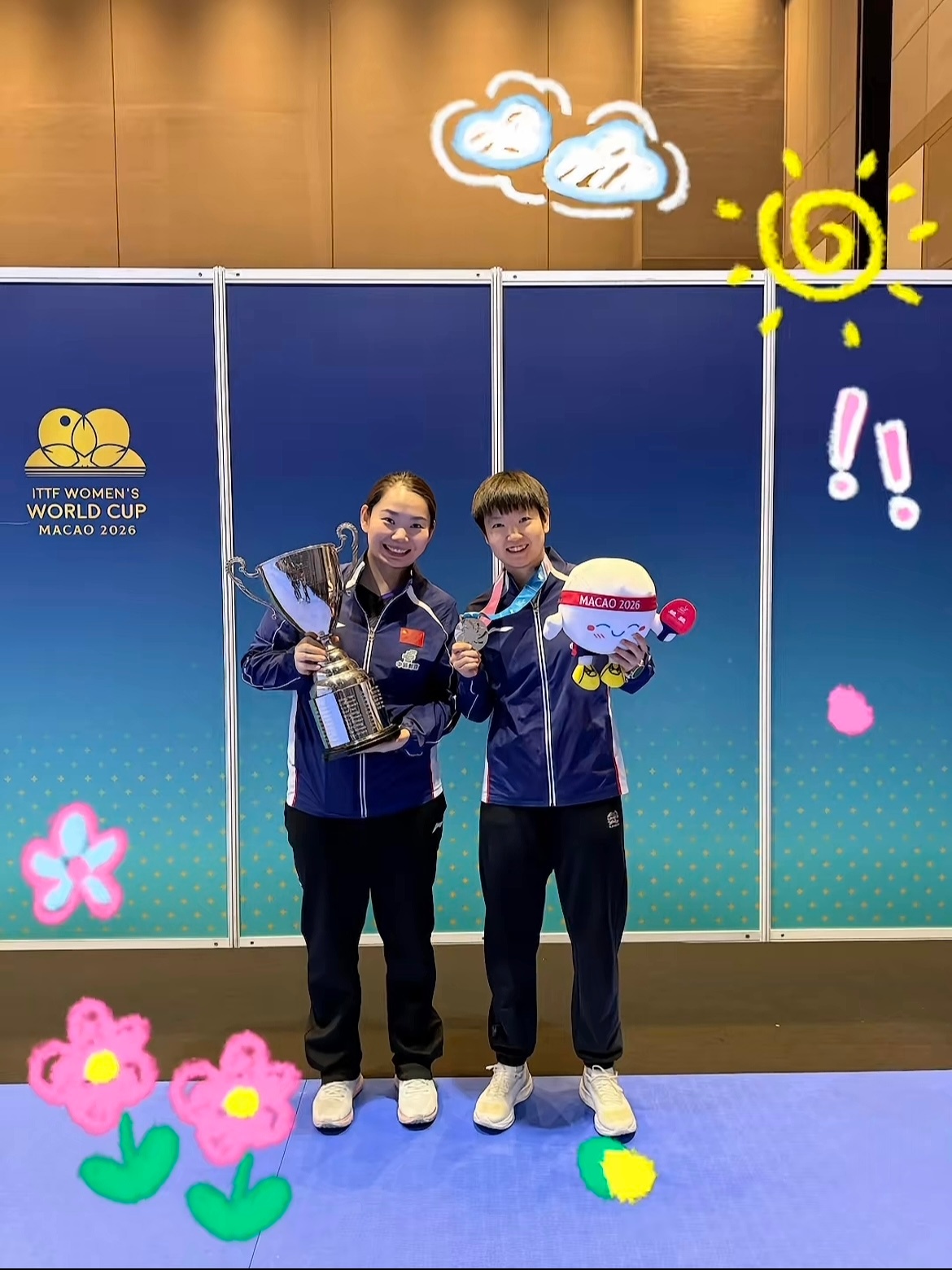 邱怡可指导分享了和孙颖莎的澳门世界杯夺冠后合影!孙颖莎是个懂得感恩的孩子,每每