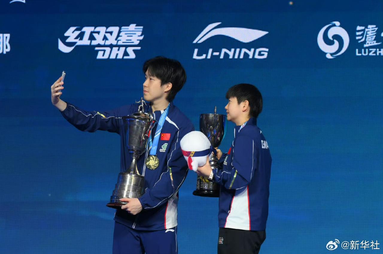 原来央妈和我们一样一直在等等两孩子的冠军合影自拍时刻。 等待女单冠军登台合影的时候,我们楚钦首先关心的是女单三连冠的奖杯🏆帽子去了哪里,然后就是商量谁来拍照📸的事,虽然头哥说了不算,但是头哥主动出击了。 头哥:待会你来拍。 莎姐:你拍。 头哥明明知道有些事自己说了不算,但是头哥乐意争取,头哥在乎的不是自己说了算不算,头哥乐意被蛐蛐!