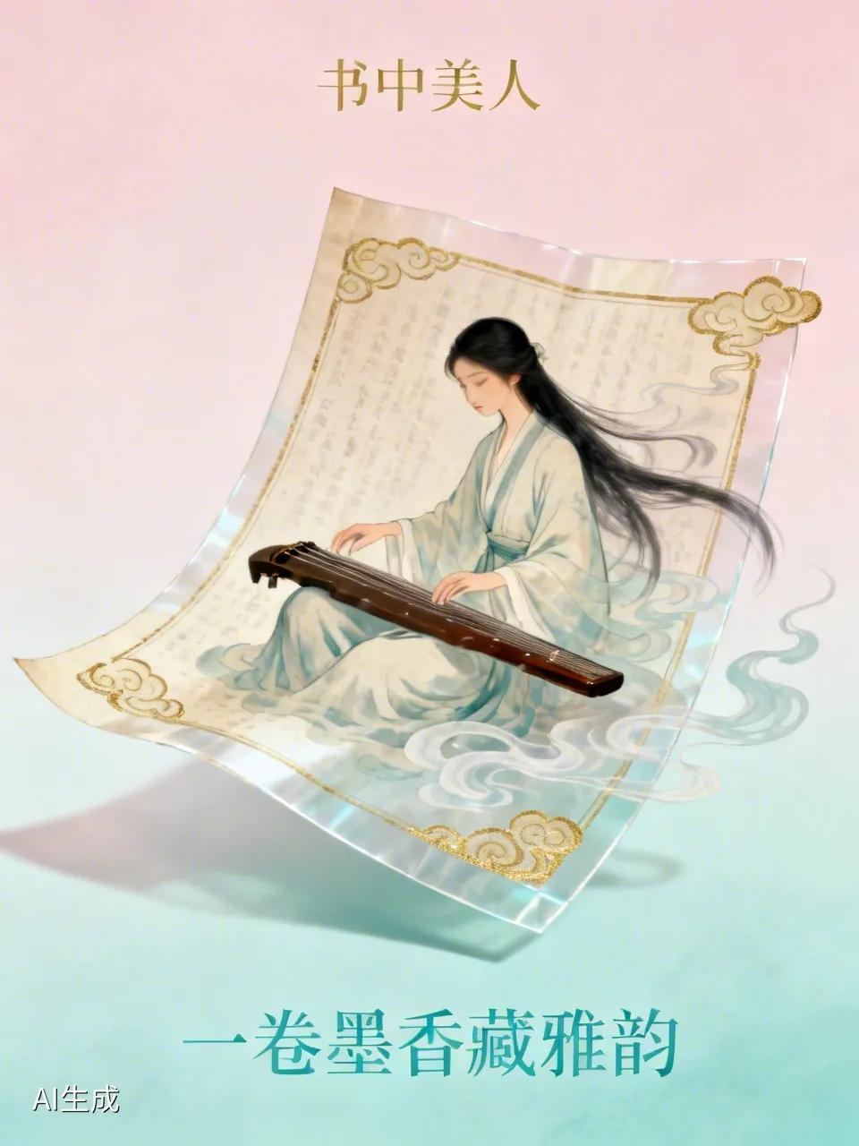 出上:画里桃花开不败, 对下:书中美女永年青。