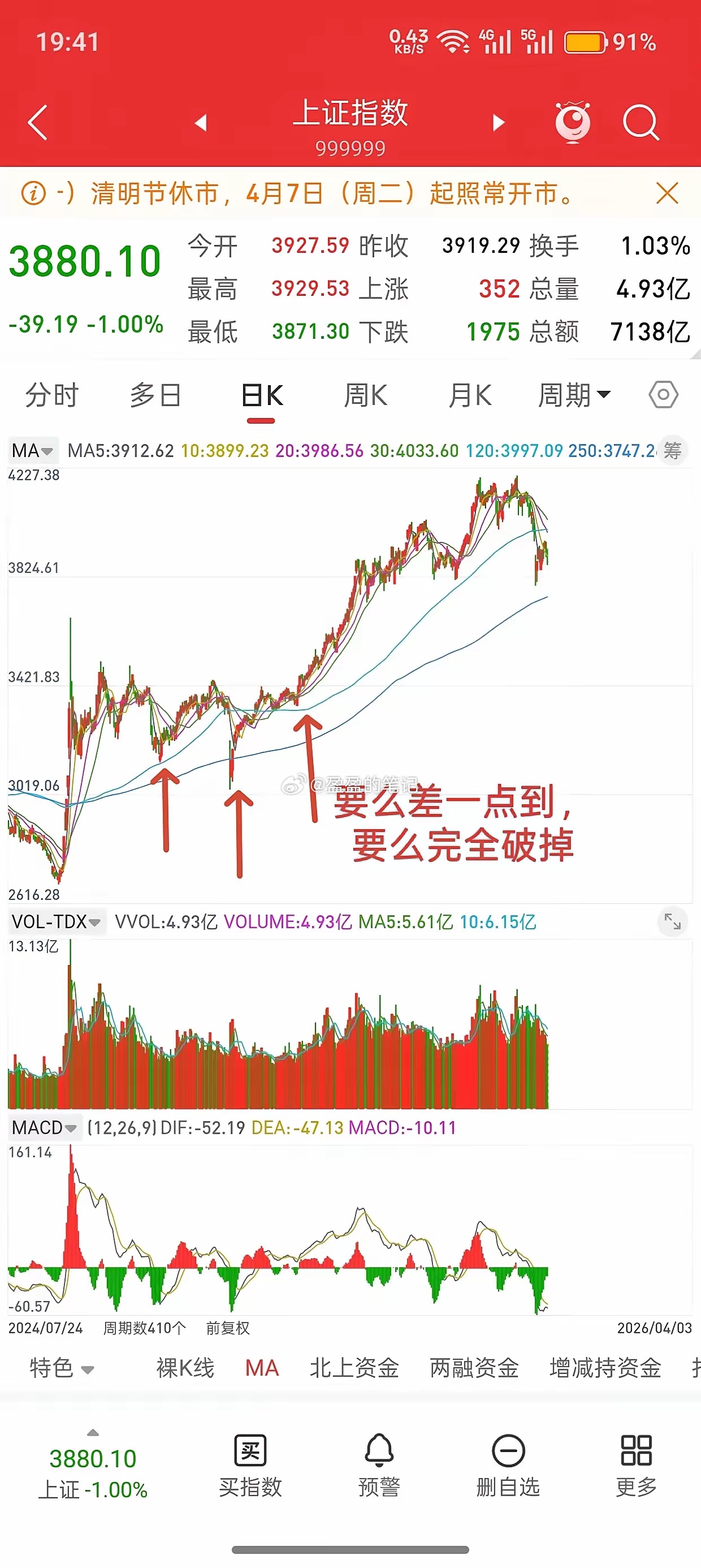 A股,主力洗盘的方法有哪些?跌破前低,打出一个新低,行情启动,突破前高,打出一个新高,行情结束。包括均线,跌到离均线支撑差一点的位置,行情启动,或跌破均线支撑,行情启动。(因此,如果你认为行情破前低,就会迎来大跌,或者行情突破前高,就会迎来大涨,那刚好落入主力的圈套)再以均线为例,比如12.16号最低点3815,120日均线支撑3777,差38点,行情直接启动,后面涨幅300点左右;比如去年6.23号最低点3347,60日均线支撑3333,差14点,行情直接启动,后面涨幅500点左右;再比如去年1.13号最低点3140,120日均线支撑3130,差10点,行情直接启动,后面涨幅300点左右。说这些就想表达,不要一味追求最低点和最高点,也许只有经历几次底部踏空,或赚钱时因为太贪,导致最后亏钱,最后才能深有感触。另外,技术指标可以参考,但不要过分依赖,因为在股市大部分人认为正确的,反而是主力最喜欢用的洗盘手段。
