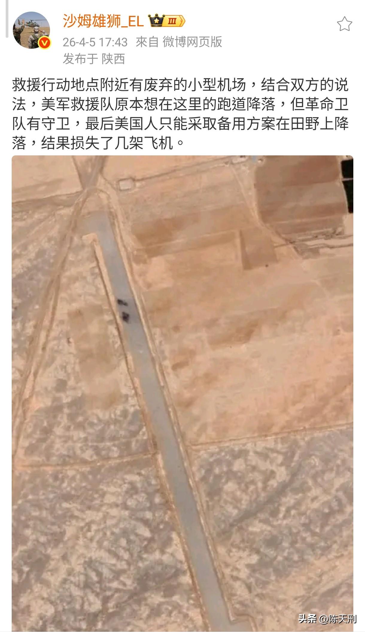 美国请继续。 因为以后你们的飞机还会掉得更多,还有更多的飞行员等着你们去营救。 这次已经搭上好几架飞机了,后面还会有更多。 我们看美国空军什么时候变成真正的空军。 当然,税宗现在还在继续吹他们救人的英勇事迹,他们炸掉了故障飞机。 但是他不会告诉你,把故障飞机炸了,那么这些飞机上的飞行员又去了哪里?他们又是如何逃出升天的呢? 到底是炸毁飞机还是怕这些人被伊朗抓住,而故意把这些大兵一起炸死呢? 这个真不好说。 毕竟他们有在朝鲜战场往战友头顶打照明弹引导志愿军去攻击战友自己好逃跑的传统。 点右上角关注我,我们一起去看这个魔幻的世界