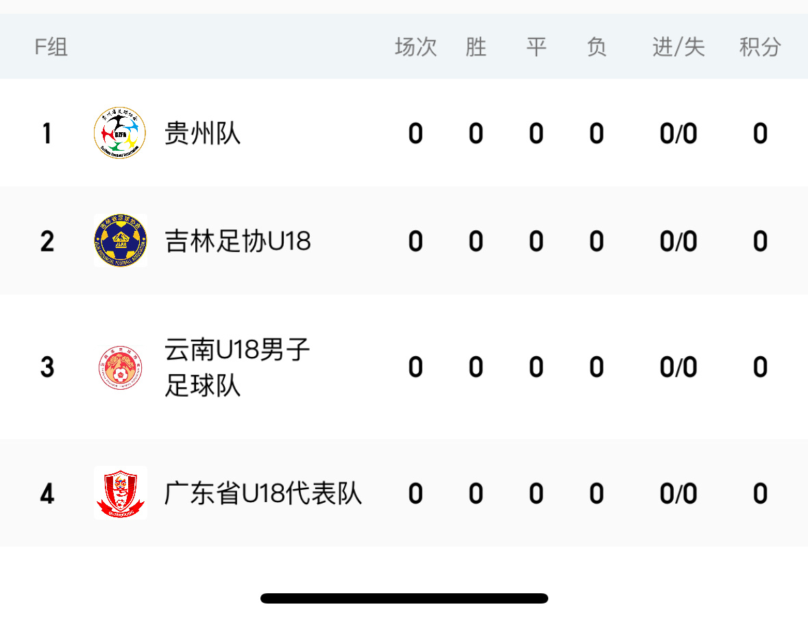 U18、U16锦标赛争冠组(三大球预选赛)分组广东均在F组