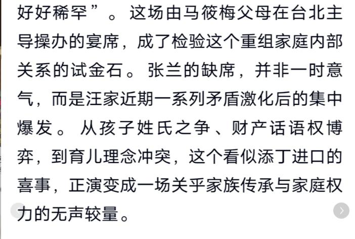 汪小菲啊现在最大的问题就是和张兰决裂了,母子关系闹成这样,让汪小菲的口碑直接降到冰点点了。 而且现在马小梅的野心也袒露出来了,人家怎么可能甘心去做个小媳妇呢?是特别是生了孩子之后,马小梅真的是也想占据点话语权了。 比如说什么自己的生活圈就是在台北,真的离不开台北这个生活环境。再比如想让汪小菲买1亿的台湾房子,在台湾安家等等。最后就是想利用麻六记做自己的品牌,女方这是早就开始打算给自己的后路铺路了。 我觉得王张兰现在做的就很对,不用去理汪小菲家那点破事了。 也不用跟儿子证明什么,干就完了,话少一点。有这么个巨婴儿子也是没辙,企业那么成功,那么坚强的一个企业家,带好接班人,儿子能力不行,情商也不高,情绪也不稳定,难堪大任。 说白了,麻六记就是张兰的,麻六记高管在与兰姐交流时表现出尊重态 汪小菲湾湾呆着吧,继续怀孕生子做月子伺候老婆,麻六记不能用骂妈的人,人品不行管不好企业