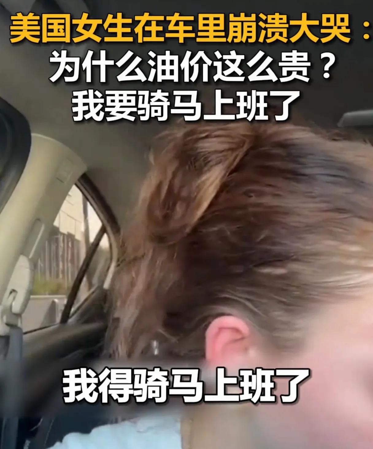 美国女生崩溃哭诉油价贵要骑马上班了! 谁能想到,号称发达国家的美国,居然有人被油价逼到要骑马上班! 最近TikTok上一段视频直接爆火,美国加州一位年轻女生在加油站当场崩溃大哭,对着镜头满脸委屈吐槽,现在的油价简直让人活不起! 她算了一笔账,自己每天通勤几十英里,每周油费就要近百美元,加满一箱油的钱,比两年前翻了一倍还多,这笔开销快占了月薪的四分之一,比车贷、房租压力都大。 实在扛不住的她,哭着喊出:实在不行就牵家里的马出来,以后直接骑马上班,起码草料比汽油便宜多了! 这话听着像玩笑,可看着她红着眼眶的样子,满是打工人的无奈。 视频火遍全网后,无数美国网友共鸣拉满,纷纷留言吐槽: “我现在加油都只敢加半箱,生怕钱包见底” “油价涨得比工资快,已经开始考虑步行上班了” “骑马上班真不是段子,再涨下去我也要效仿” 看来地主家也没有余粮呀! 看似离谱的骑马上班,背后是美国普通人被高油价、高生活成本压得喘不过气的真实困境。 一边是物价飞涨,一边是工资不涨,连基本的出行都成了负担,这真的是被现实逼到没办法了。这也是美以对伊战争的外溢影响吧! 不得不说,不管在哪儿,打工人的心酸都是相通的!
