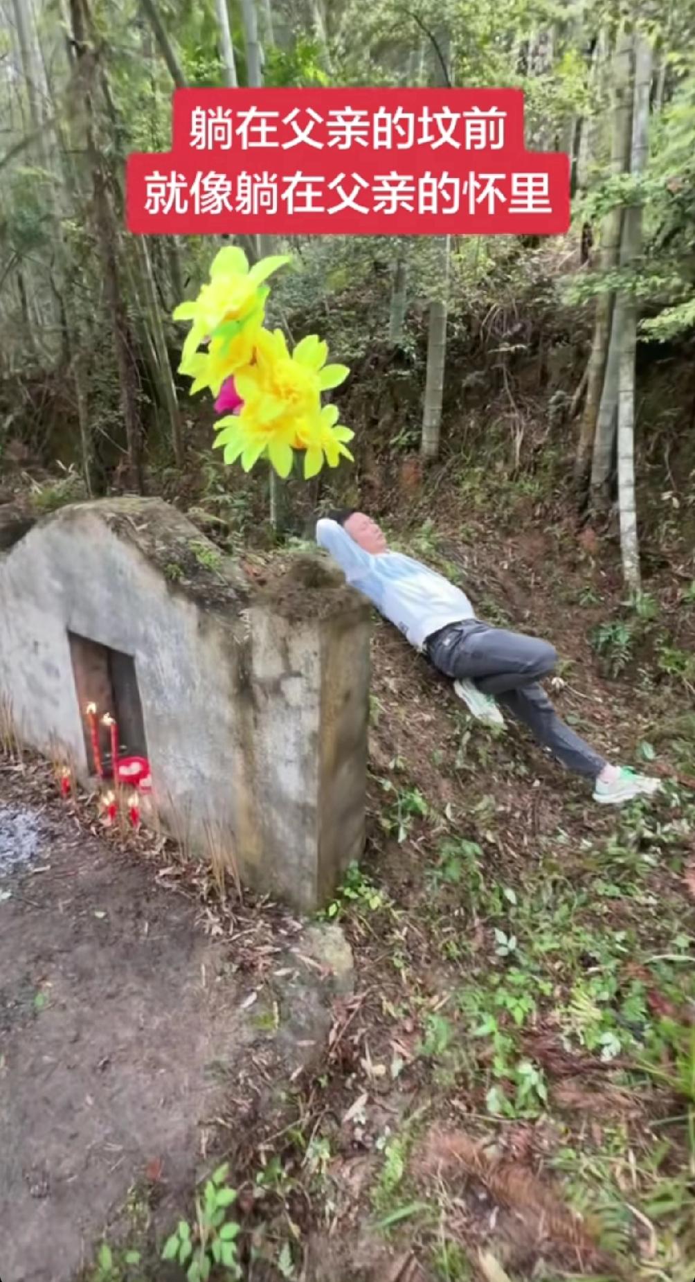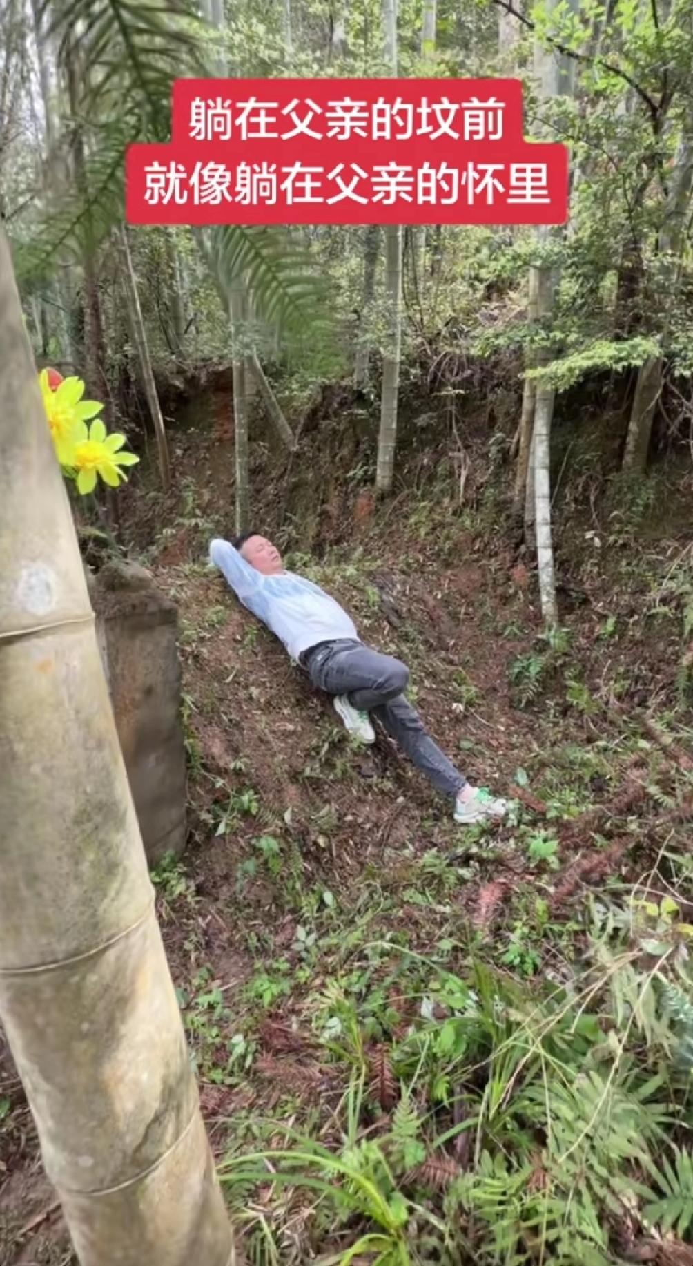 遗憾终生, 一位男子清明节给父亲去上坟后, 躺在父亲坟上说:我这一生,没见过