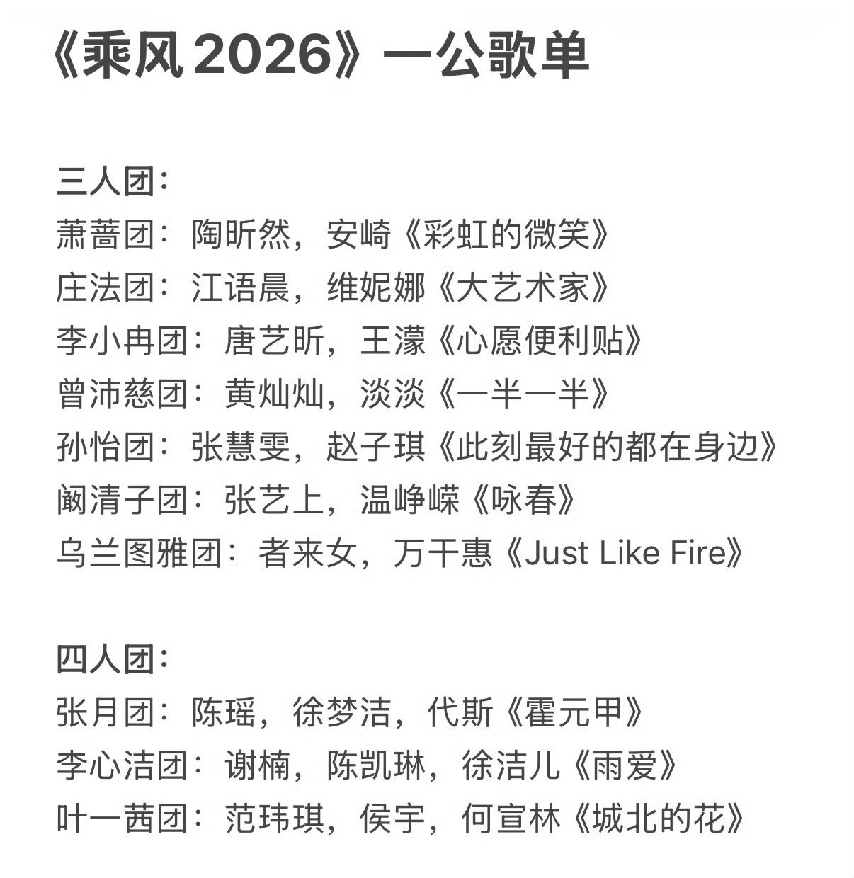 阚清子被拒绝14次乘风2026一公组队选歌情况,阚清子居然被拒绝了14次…为什