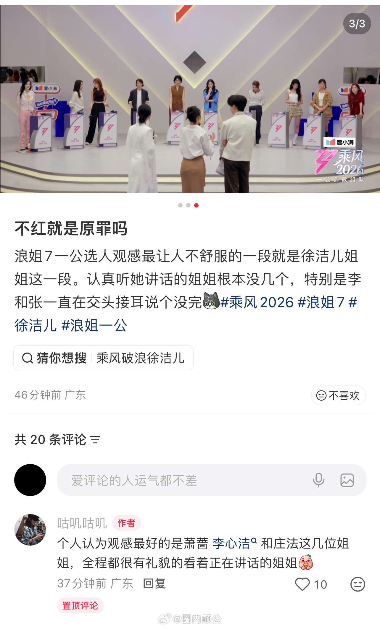 徐洁儿上场,没有姐姐亮灯,还有人交头接耳不听。大家觉得不红是原罪还是……乘风20