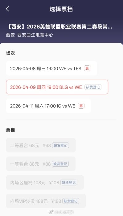 2026LPL第二赛段常规赛组内赛售票信息公布,近日比赛中其他战队的比赛现场门票打折出售未能卖完,而BLG的比赛却一票难求!