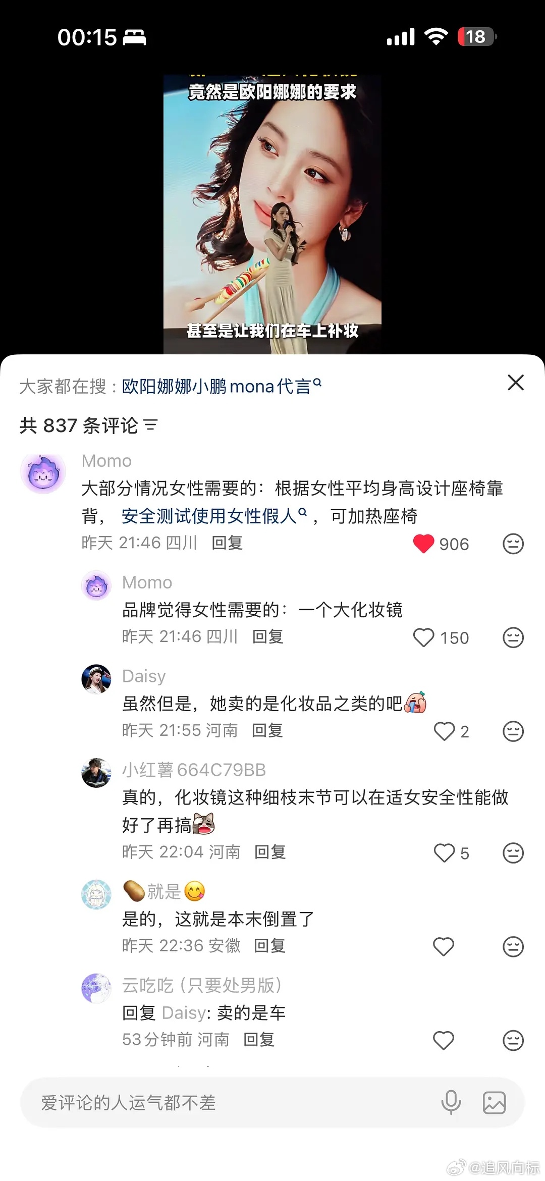 哈哈哈哈哈太抽象了,,,化妆镜在车里的作用为零,还是感谢欧阳娜娜为大家考虑