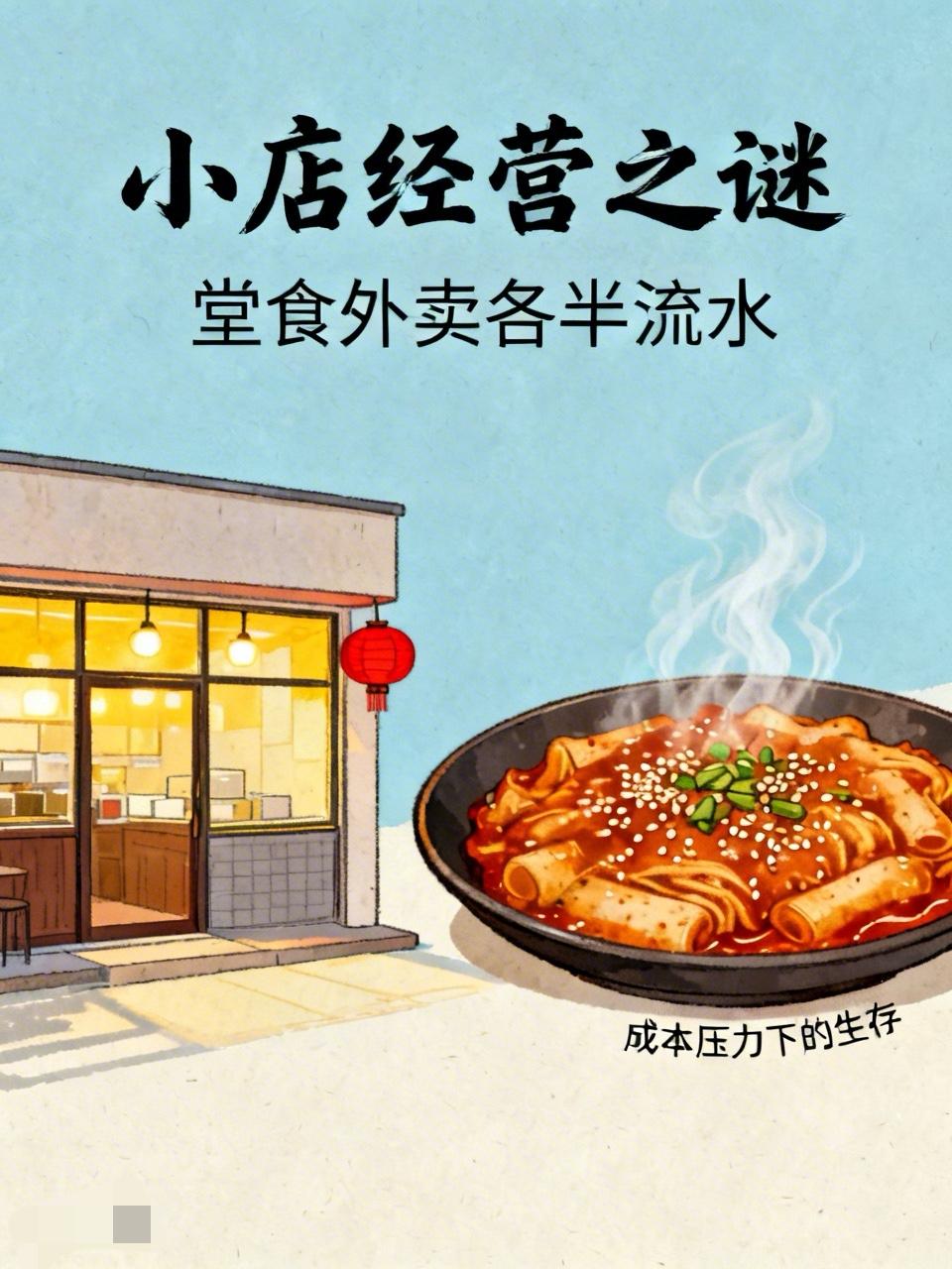 现在的小店还赚钱吗?今天去了家小饭店,一顿饭时间就那么几桌吃饭的,人工成本、食材成本、房租、水电气暖,这能赚钱吗?不赚钱那还干个什么劲儿啊?难道有我不了解的地方? 现在的小店赚钱确实是个谜。就拿我去的这家小饭店来说,一顿饭时间就几桌客人,看着这冷清劲儿,真怀疑它咋赚钱。 其实餐饮小店成本高得很,食材、人工、房租、水电都是大头。有个在河南商丘开韩餐店的老板,堂食和外卖各占一半流水,一份21.8元的拉面,线上毛利只剩1块多,因为平台补贴大部分得商家承担,还要交服务费。 而且很多餐厅看似生意好,实际不盈利。像食材成本一般占总成本40% - 60%,管理不善就会利润被蚕食。价格定位也很重要,定不好就会错失客户。所以小店能不能赚钱,门道太多啦。 餐饮开店现状 餐饮业经验分享 经营小店的乐趣 小面馆经营 餐饮门店利润 餐饮成本真相 餐馆营业额