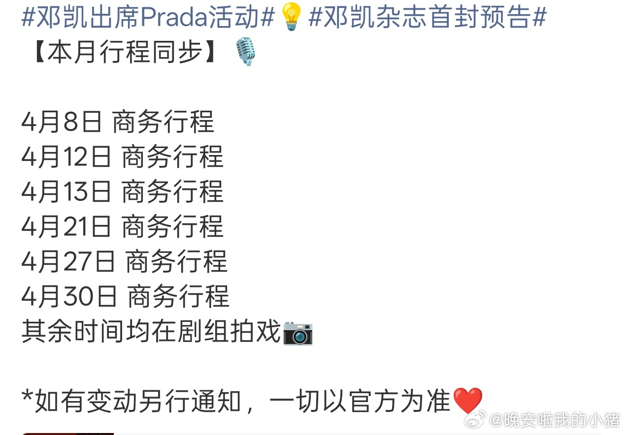 邓凯唯粉拒绝cp捆绑,四月行程也刚好隐藏了10号和孔雪儿的双人杂志拍摄行程,为了